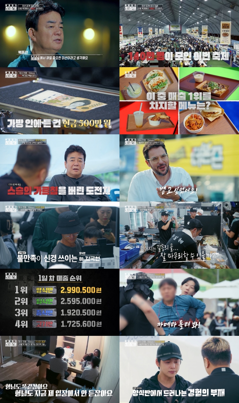 "예능역사상처음"iMBC연예뉴스사진'백종원의레미제라블'역대급극악미션이시작됐다.2월1일방송된ENA'백종원의레미제라블'에서는진짜장사꾼이되기위해한걸음더다가서는생존자들의모습이공개됐다.이들은명실상부대한민국대표축제로자리잡은안동국제탈춤페스티벌에서일식반,고기반,중식반,양식반으로나뉘어푸드부스를열었다.무려10일동안펼쳐지는장사전쟁에서과연어떤팀이전원생존의베네핏을획득할지,그중누가두각을나타낼지이목이집중됐다.이날공개된미션은'장사전쟁:10days'.팀별로나뉘어안동국제탈춤페스티벌에서푸드부스를열고10일동안장사전쟁을펼치는것.메뉴선정,요리,접객에이르기까지모두직접선택하고책임져야하는역대급미션으로이번축제에몰린인파는무려140만명이었다.백종원대표는"예능역사상이런프로그램은없을것"이라며"이번미션이가장중요하다"라고강조했다.이어백종원대표와제작진은각팀에장사지원금을500만원씩지급했다.담임셰프들이레시피등에도움을줄수는있으나,결정은전적으로도전자들의몫.도전자들은셰프들의조언을참고해최선을다해장사준비를시작했다.일식반은한우볶음우동과떡두부,고기반은자이언트찜닭다리,중식반은고기듬뿍고기호떡과고기팝콘,양식반은찜탉코를최종메뉴로준비했다.각각장점과단점이존재하는메뉴들인가운데백종원대표는장사시작전도전자들의최종점검에나섰다.이과정에서데이비드리셰프가고기반에대한불안감을드러냈다.경력자들이모인만큼고집이강한고기반도전자들이데이비드리셰프의조언을따르지않고,레시피로변경한것.이에고기가덜익는불상사가발생했고데이비드리셰프는"내가할수있는건화밖에없다"라고분노했다.본격적인장사가시작되자다른팀에서도문제가속속발생했다.쏟아지는주문에당황하는가하면,중식반은고기호떡에필요한빵수급이원활하지않아몇번이고주문을마감해야했다.양식반은타코안에재료를적게넣어혹평받았고,일식반은업무분담관련도전자들사이에갈등이격화되기도.도전자들의첫날장사를지켜본백종원대표와4인담임셰프는남은시간중6일은시행착오기간으로설정,최종3일의장사결과로최종우승팀을결정하기로했다.예상을빗나가는돌발상황의발생,시간에따라몰리는손님들과쏟아지는주문,몇몇손님들의컴플레인등은도전자들을벼랑끝으로내몰았다.정신적,육체적으로최악의상태가된도전자들은서로날카로운말을주고받으며아슬아슬갈등하기도,또다시마음을다잡고서로으쌰으쌰하며위기를극복하기도했다.그렇게하루만에어마어마한경험을한도전자들은장사꾼으로서한걸음더성장했다.첫날장사결과최고매출액을달성한팀은02최윤성(박스에버려진나),04양경민(이글스방출투수),06김국헌(망한아이돌)이함께한양식반이었다.이들은하루만에299만원의매출을달성하며가능성을보여줬다.첫날장사를통해리얼장사의서막을연도전자들이과연남은9일동안어떤모습과성장을보여줄지주목된다.한편이날방송에는백종원대표의애착인형으로불리는15년연속미슐랭셰프파브리가시크릿심사위원으로깜짝등장해눈길을끌었다.파브리의거침없는평가에백종원대표와담임셰프4인의불안감이높아지기도.역대급미션,도전자들의의지,심사단의뜨거운응원과애정이안동을발칵뒤집었다는반응이다.그런가하면이날방송말미공개된예고에서는욕설에주먹다짐까지하는고기반,강력한의견충돌을보이는중식반,윤남노셰프의분노를부른양식반등의모습이노출됐다.한층더잔혹하고아슬아슬한서바이벌을예고한ENA'백종원의레미제라블'은매주토요일저녁8시30분방송된다.iMBC연예백아영|사진출처ENACopyright©MBC연예.무단전재및재배포,AI학습금지.