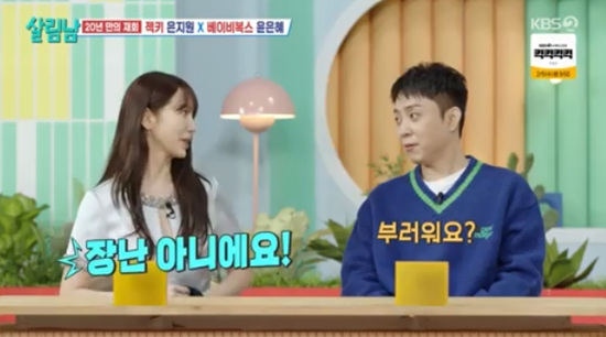 윤은혜/마이데일리[마이데일리=박서연기자]그룹베이비복스출신배우윤은혜가결혼한멤버들을부러워했다.1일방송된KBS2TV'살림하는남자들'(이하'살림남')에는해외일정으로자리를비운백지영을대신해윤은혜가스페셜MC로출연했다.이날은지원은"저희되게오랜만아니냐"라고했고,윤은혜는"맞다.한20년만이다"라고밝혔다.20년만의재회에깜짝놀란은지원은"벌써그렇게됐냐.우리'X맨'도했다.씨름할때날패대기쳤던기억이있다"고해윤은혜를당황케했다.윤은혜는"예쁘게입고왔는데패대기란얘기듣고"라며"그때는오빠한테만그런게아니라모든남자들을패대기쳤다"며머쓱하게웃었다.지난해연말베이비복스는'KBS가요대축제'무대에올라화제를모았던바.영상조회수는600만뷰를돌파했다.박서진은"무대가엄청나게컸는데아우라로그무대를채우시더라.멋있었다"고칭찬했다.이에윤은혜는"최고의칭찬이다"라며"2주동안밤새우면서연습했다.그런노력을인정해주시는거같고실력도늘었다는얘기를들으니까뿌듯했다"라고미소지었다./KBS2TV'살림하는남자들'방송캡처그러다윤은혜는"처음에는저희가예쁜척을안해서너무좋았다더라.그렇게예쁜척을많이했는데!엄청많이했는데안느껴졌나보다"라고고백해웃음을자아냈다.또윤은혜는재결합했다고봐도되냐고묻자"많은분들이오랫동안기다려주셨으니까2025년버전으로10곡정도모아서녹음을하려고한다"고했다."신곡도나왔으면좋겠다"는말에"저희가돈을잘모으면신곡활동을할수있지않을까요"라고너스레를떨었다./KBS2TV'살림하는남자들'방송캡처멤버중3명이결혼했다는윤은혜는결혼압박을받지않냐고묻자"그런건얘기안하는데남편분들이와서응원을한다.녹음실에눈치없이오시고"라며"어떤모습을봐도꿀이뚝뚝떨어지더라.너무꽁냥꽁냥하더라"라고했다.이를듣고은지원은"부럽냐"고하자,윤은혜는"장난아니다"라고말했다.이에박서진은"두분도그렇고그런사이가될뻔했다던데"라고과거은지원과윤은혜가썸을탔던사이가아니냐의심했다.두사람은약20년전같은드라마에출연해핑크빛로맨스연기를펼친바.이를기억못하는은지원은"뭐라고요?"라며되물어눈길을끌었다.Copyright©마이데일리.무단전재및재배포금지.