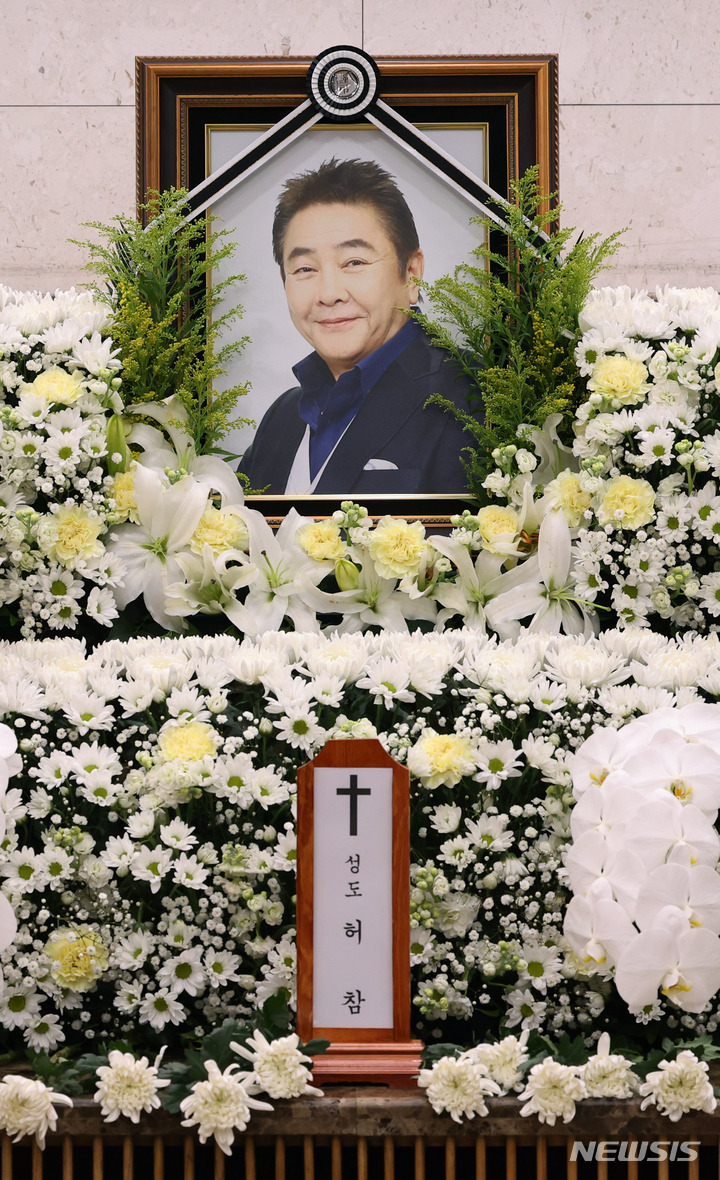 [서울=뉴시스]사진공동취재단=故허참의빈소가2월1일서울풍납동서울아산병원장례식장에마련되어있다[email protected][서울=뉴시스]최지윤기자=MC허참(이상용·1949~2022)이세상을떠난지3년이흘렀다.허참은2022년2월1일간암투병끝에세상을떠났다.강원춘천시서면경춘공원에서영면했다.당시KBS2TV'불후의명곡-전설의명MC특집'과TV조선'스타다큐마이웨이'등에출연했으나,민폐가될까봐지인에게도투병사실을숨긴것으로전해졌다.사망하기한달전방송한JTBC'진리식당'은마지막출연작이됐다.1970년종로음악다방'쉘부르'MC로연예계에입문했다.당시DJ이종환눈에띄어MC로발탁됐다.1972년TBC(동양방송)'7대가수쇼'MC로정식데뷔했다.26년간KBS1TV'가족오락관'(1984~2009)을이끌었으며,그가외친"최종점수몇대몇!"은이프로그램의상징이됐다.이후'도전!주부가요스타'(2000~2003)'골든힛트송'(2008~2010)'엄지의제왕'(2013~2017)등을진행했다.가수로도활동했다.1976년'왜몰라주나'를시작으로'우리노래어때요'(1987)'추억의여자'(2007)'허참2020'(2019)등을발표했다.☞공감언론뉴시스[email protected]©뉴시스.무단전재및재배포금지.