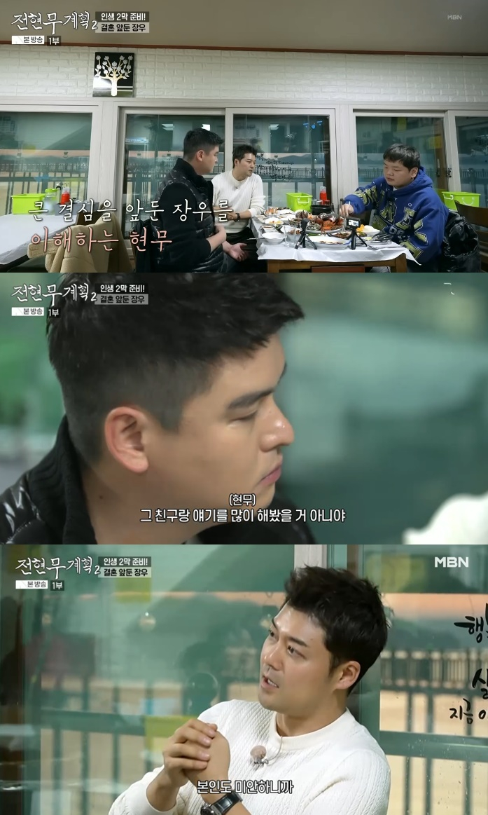 MBN·채널S공동제작예능‘전현무계획2’방송캡처.배우이장우가조혜원과결혼을망설인이유에대해설명했다.31일방송된MBN·채널S공동제작예능‘전현무계획2’15회에서는경상남도거제시에내려간전현무,곽튜브의모습이담겼다.특히게스트로등장한이장우의속마음토크가공개돼눈길을끌었다.이날전현무는“이제조금물이들어오나싶어서노를저으려고하는데‘나혼자산다’를하차하면‘이렇게되는거아닌가’라는생각이들수있다.또제수씨생각하면마냥기다리게할수없는노릇”이라고말했다.이에대해이장우는“(이야기를)많이해봤는데그친구도(쉽게)결정을못하는것이후회할까봐”라고말했고전현무는“본인과의결혼이나중에후회요소가되면본인도미안하니까”라고설명했다.이어전현무는“이런고민할수있는것자체가얼마나행복하니”라고덧붙였다.한편이장우는8살연하배우조혜원과지난2023년6월열애사실을인정했다.또이장우는지난달방송된MBC예능‘시골마을이장우’에서2025년을목표로결혼을준비중이라고밝혀화제를모았다.이수진기자[email protected]©일간스포츠.무단전재및재배포금지.