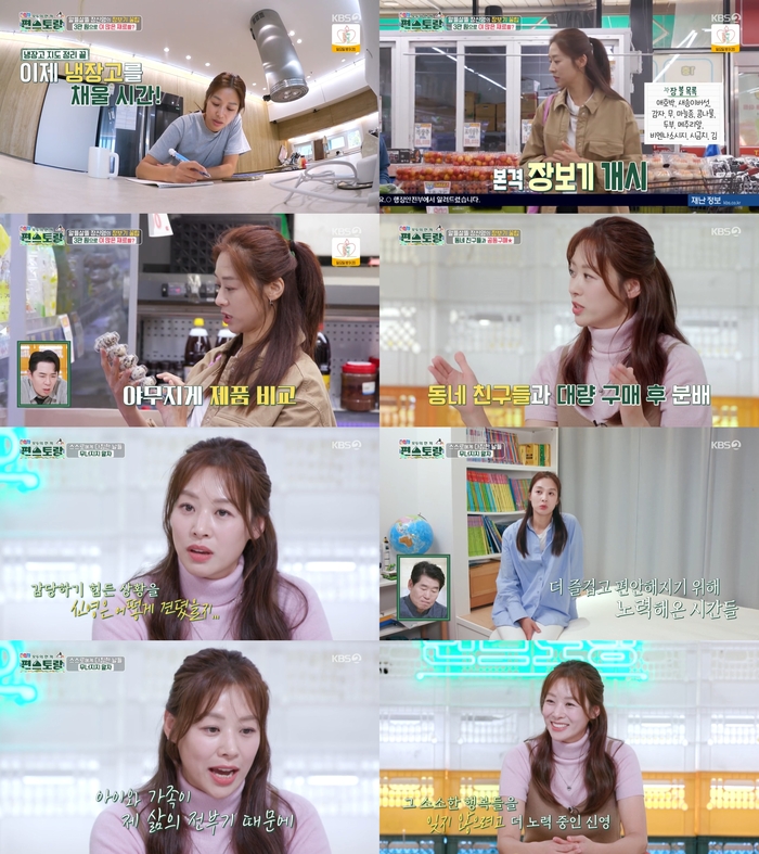 ‘신상출시편스토랑’.사진IKBS2‘신상출시편스토랑’방송캡처배우장신영이남편강경준의불륜사건으로힘들었던시기를간접적으로언급했다.31일방송된KBS2‘신상출시편스토랑’(이하‘편스토랑’)에서는신입편셰프로첫등장한장신영의모습이그려졌다.이날장신영은아들을등원시킨후장보기리스트를작성했다.꼼꼼히장보기리스트를작성한장신영은“3만원이면되겠다”고자신감을드러냈다,‘편스토랑’패널들은“안될것같다”,“요즘물가가너무비싸다”고믿지못하는모습을보였다.장신영은자전거를타고마트로향했다.그러나물건을들었다놨다만하고아무것도사지않아궁금증을자아냈다.장신영은“좋고안좋고를좀따지고싶어서어느정도시세가되는지조사를한것”이라고설명했다.비싼가격에장보기를포기한장신영은5분거리에있는또다른마트로향했다.마늘종,애호박,비엔나소시지등을구매한장신영은첫번째마트로복귀해나머지식재료를구매했다.그러나가장비싼시금치와김은구매하지못했다.장신영은동네친구들을만나식재료를공동구매해눈길을끌었다.장신영은“2년전에이사를왔는데좋은친구들을만났다.정말성격좋고착한사람들이다.내가아프고힘들때아무도없었는데어떻게될까봐살뜰히챙겨줬다.나를배려해서전화도안했다.‘신영아문앞에뒀으니까챙겨먹어’라고톡만보냈다.너무너무감사한존재들이다”라고해뭉클함을자아냈다.장신영은강경준의불륜사건을간접적으로언급하며“내가좀힘들고지쳐있을때아이도아나보다.그걸느낀거다.‘내가정신을차려야겠다’라는생각에아들과밖에나가서시간을보내려고했고집안에서도더즐겁고편안하게지내려고노력했다.그러다보니까다들제자리를조금씩찾아온것같다”고말했다.이를들은이금희가“사실마음속이막시끄러웠을것같다”고하자장신영은“나에게는모든삶에있어서아이와가족이전부이기때문에그걸놓치고싶지않았다”고했다.이어“‘아이들이나에게힘을주는구나’가느껴지더라.아이들을위해서라도‘무너지지말고일어서자’고다짐했다.일상생활로다시돌아가려고노력도많이했다.웃으면서가족과밥먹고이런게행복이었는데그소소한행복들을잊지않으려고그렇게지냈던것같다”고덧붙였다.[이세빈스타투데이객원기자]Copyright©스타투데이.무단전재,재배포및AI학습이용금지
