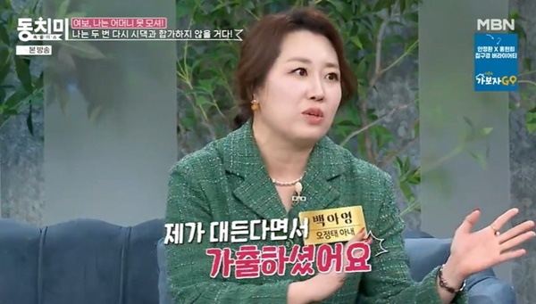 MBN‘속풀이쇼동치미’캡처MBN‘속풀이쇼동치미’캡처[뉴스엔유경상기자]백아영이시집살이설움을털어놨다.2월1일방송된MBN‘속풀이쇼동치미’에서개그맨오정태아내백아영은“나는두번다시시댁과합가하지않을거다”라는제목으로속풀이를했다.백아영은“남편이효자다.저와결혼할때부모님과같이살자고했다.그때당시에는남편이배우강동원같이보였다.콩깍지가씌어남편말에따랐다.엄마가착하고재미있는분이라고했다.결혼과동시에시어머니를모시게됐다”고시집살이시작을말했다.이어백아영은“어머님이같이사는데도저를식구처럼껴주지않았다.늘견제를하셨다.청소나설거지를잘해도꼭한마디하셨다.그만닦아라,닳겠다,다벗겨지겠다.아들은새빠지게일하는데전기세나가게불켜놓는다고.어머님은24시간TV를켜놓으셨다”고시어머니의견제를말했다.시어머니의살림참견,잔소리는참았지만육아에대해서는참을수없었다고.백아영은“애가아토피가있어발진이잘생긴다.잘씻기고보습제를발라주는데물세아끼라고일주일에한번만씻기라고.옛날에는다그러고살았다고”라고토로했다.또“모유수유끊고이유식먹이려고했는데애가불쌍하다.우리정태는7살까지모유를먹였는데.그건아니라고한마디했더니대든다고가출하셨다.시누이를집에불러서제험담을하셨다.저는방에서매일울고,남편에게전화하면엄마가나이드셔서그렇지착한분이라고.말을하나마나였다”고토로했다.그렇게티격태격싸우다가에어컨때문에분가를하게됐다고.백아영은“아기가땀띠날까봐에어컨을켰더니정태도없이무슨에어컨을켜나고끄셨다.하나도안덥다고,옛날에는에어컨없이살았다고.어머니와싸우고남편을불렀다”고당시상황을전했다.백아영은“어머니가저랑못산다고.남편은효자니엄마말을바로들었다.합가2년만에분가를했다.분가하고나서둘째생기고남편일도잘풀리고.어머니와멀리살수록사이가좋아졌다.이걸알아서두번다시합가는절대안할거”라고선언했다.박수홍은“어머니가먼저같이못산다고해서따른것밖에없다”고너스레를떨었고최은경은“오정태도같이사는것포기했냐”고질문했다.백아영은“언젠가다시모시겠다고생각하는것같다.어머니와사이가좋아지니둘이자매같다,친구같다고이상한소리를계속한다.너무싫다.닮았다고하고.남편이그래도절대그럴마음이없다.가까이사는정도는괜찮다”고선을그었다.(사진=MBN‘속풀이쇼동치미’캡처)뉴스엔유경상yooks@기사제보및보도자료[email protected]ⓒ뉴스엔.무단전재&재배포금지Copyright©뉴스엔.무단전재및재배포금지.