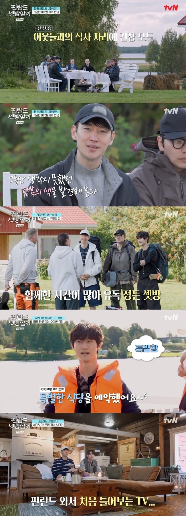 사진=tvN‘핀란드셋방살이’제공[뉴스엔이민지기자]시티보이즈가현대문명이갖춰진셋방으로입주했다.1월31일방송된tvN‘핀란드셋방살이’에서마지막셋방에입주한이제훈,이동휘,곽동연,차은우가예상치못한공간에서마주한신문물에어색해하는모습이공개됐다.먼저시티보이즈는우여곡절끝에마을잔치에내놓을한식을완성하고이웃을맞이할세팅을마쳤다.하나둘도착하는이웃들사이에서뱅헤어스타일을한조랑말과함께등장한이웃을본시티보이즈는놀라움을감추지못했다.본격적인잔치가시작되자시티보이즈는호박전,불고기,고추잡채등한식을소개했다.이웃들은순록스튜,피시필레,레몬케이크등을내놓았고이들은한식과라플란드식이어우러진글로벌한한상을맛보며행복한시간을보냈다.시티보이즈의정성이담긴한식을맛본이웃들은“진짜맛있다”라며호평을이어가네사람을뿌듯하게만들었다.이웃들과따뜻한정을나눈셋방을떠난시티보이즈는마지막셋방으로향했다.이삿날의암묵적약속인외식찬스를사용하기위해식당예약을마친곽동연은“저한번믿어주세요”라며엄청난자신감을드러내형들을잔뜩기대케했다.하지만예상과달리뜻밖의사파리공간에발을들인멤버들은식당에가기위해배를타고섬으로가야한다는사실에충격을감추지못했다.의심속에서도착한식당에서는핀란드전통수프인로히케이토,바비큐플래터등맛있는음식들이시티보이즈를기다리고있었고오랜만에맛보는도시의맛에네사람은먹방을이어가폭소를자아냈다.색다른식사를마친후시티보이즈는강을건너야만도달할수있는새로운셋방에도착했다.동화같은대자연을배경으로대가족과강아지가시티보이즈를반겨주는화기애애한광경이펼쳐졌다.마지막셋방을구경하던시티보이즈는TV,인덕션,냉장고,와이파이등그동안꿈꿔왔던문명이가득한광경에기쁜마음을한껏표했다.그토록원했던양변기에이어샤워기까지모두갖춰져있어시티보이즈는100%만족한모습을보였다.그러나갑작스럽게현대문명을마주한시티보이즈는되려어색함을드러내며본능적으로자연을갈구해보는이들을박장대소케했다.곽동연은해먹에앉아자연을감상했고,이제훈은티비를보던중갑자기풀숲으로향해베리를채집하기시작했다.문명의편리함속에서도본능적으로자연을찾게되는아이러니한상황.익숙하면서도어색한환경에놓인시티보이즈의마지막셋방살이가흥미를돋웠다.뉴스엔이민지oing@기사제보및보도자료[email protected]ⓒ뉴스엔.무단전재&재배포금지Copyright©뉴스엔.무단전재및재배포금지.
