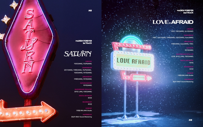 메이딘신보트랙리스트.사진ㅣ143엔터테인먼트그룹메이딘이더블타이틀로팬심정조준에나선다.메이딘(마시로,미유,수혜,예서,세리나,나고미)은2일밤12시공식SNS채널을통해신보‘MADEINFOREVER(메이딘포에버)’의트랙리스트를오픈했다.공개된트랙리스트에따르면이번신보에는더블타이틀‘SATURN(새턴)’과‘사랑,두려움’까지총두개의트랙이수록된다.메이딘은서로다른분위기의두곡으로다채로운역량을증명해내며K팝팬들의귓가를사로잡을전망이다.정식컴백에앞서메이딘은오는7일‘SATURN’을선공개하고컴백예열에박차를가한다.‘SATURN’은토성을중심으로펼쳐지는관계의은유를담은곡으로,복잡한감정을아련한감성으로표현한메이딘의보컬케미스트리를만나볼수있다.특히‘사랑,두려움’은한국대중음악의전설듀스(DEUX)의곡을리메이크한곡이다.메이딘은감미로운멜로디와내적갈등의감성을현대적인사운드로재해석,자신들만의음악색깔을뚜렷하게드러내며원곡과는또다른매력을선사할것으로기대를모은다.데뷔EP‘상승’으로설렘과애틋함을노래하며K팝의새로운장면을예고했던메이딘.한층더내밀한감정을담아낸곡으로돌아오는만큼,깊은공감을이끌어낼이번신보를향해관심이높아진다.한편,메이딘의‘MADEINFOREVER’는14일오후6시각종온라인음원사이트를통해공개된다.앞서143엔터테인먼트는지난해11월29일멤버가은의팀탈퇴소식을전하며6인조체제변화를알렸다.[지승훈스타투데이기자]Copyright©스타투데이.무단전재,재배포및AI학습이용금지