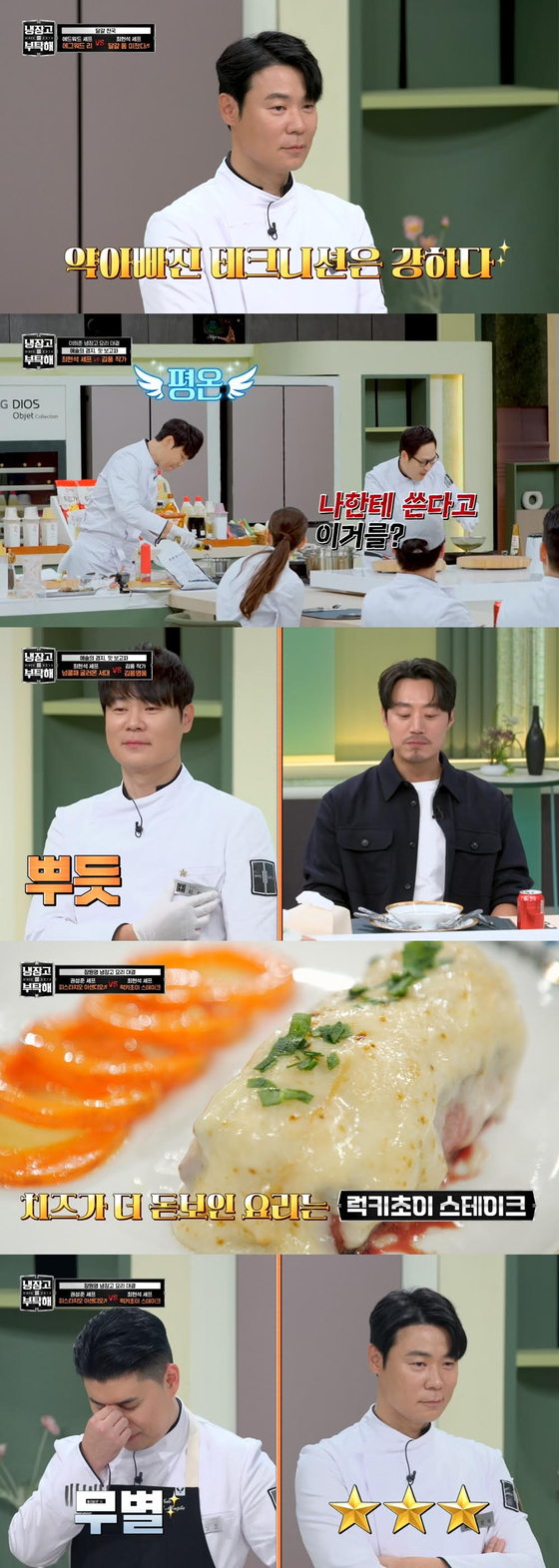 '냉장고를부탁해'셰프최현석과박은영이'냉장고를부탁해'에서무패를기록하며공동1위를달리고있다.셰프들의다이내믹한15분요리대결이펼쳐지는JTBC예능프로그램'냉장고를부탁해'에서3전3승의기록으로현재공동1위인최현석과박은영의활약상을짚어봤다.먼저최현석은음식의맛과재미,승률을다잡으며'냉장고를부탁해'원조셰프의품격을보여주고있다.'흑백요리사:요리계급전쟁'에서우승한권성준,준우승한에드워드리도꺾으며15분요리경력자의위엄을드러낸것.특히최현석의허세와자신감이닮은권성준을상대로승리하며권성준에게'아기최현석'이라는수식어를부여해웃음을선사했다.또최현석은예술적인요리를주제로암흑요리사김풍과맞붙기도했다.최현석은화제가됐던자신의가자미미역국을카피한김풍과티격태격케미스트리를뽐냈다.바삭한튀일과고기무스,생선살의다채로운맛을느낄수있는'넝쿨째굴러온서대'로게스트이희준을감동하게만들었다.도전자셰프박은영은패기와열정,창의력이빛나는요리로원조셰프들의아성을무너뜨리는매서운질주를이어가고있다.첫대결에서는아이스크림을튀겨만든'해피빠스데이'로신선한충격을안기며이연복의야매수제자김풍을이겼다.만두피대신머랭을사용한동파육만두,'동파육만두가머랭?'으로는두번째상대중식대가이연복을이겼다.그뿐만아니라상반된식감과온도의차이를느낄수있는요리대결에서는쫄깃하고차가운닭요리인빵빵지를소면을튀겨만든바삭하고따뜻한그릇에담아낸'추앙한닭'으로게스트손석구를사로잡았다.중식대가에이어일식대가로손꼽히는정호영까지눌러도장깨기요정으로자리를잡았다.지난방송에는권성준이에드워드리와의리매치에서승리하며왕좌를지키고연패를끊었다.그러나최강록과김풍은아직3연패의늪에빠져있는상황.최강록과김풍의운명은9일오후9시에방송되는'냉장고를부탁해'에서공개된다.황소영엔터뉴스팀기자[email protected](콘텐트비즈니스본부)Copyright©JTBC.무단전재및재배포금지.