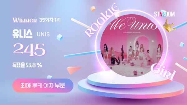 ▲유니스가1월넷째주스타덤'최애루키아이돌'여자부문주간랭킹1위를차지한투표결과이미지.[스포티비뉴스=김원겸기자]유니스가스타덤'최애루키아이돌'주간랭킹1위자리를되찾았다.유니스는1월넷째주(집계기간1월20일~1월26일)스타덤'최애루키아이돌'여자부문주간랭킹에서정상을차지했다.7주연속정상을달리다1월셋째주이즈나에게잠시1위자리를내줬던유니스는1주일만에다시정상을되찾았다.유니스는집계기간동안득표율53.8%로1위를차지했다.키스오브라이프는38.5%의득표율로2위에올랐다.영파씨가6.2%로3위를했고,지난주깜짝1위를했던이즈나는1.5%로4위에자리했다.한편,'최애루키아이돌'남자부문에서는호라이즌이5주연속1위를차지했다.'최애아이돌'남녀부문에서는임영웅과,피프티피프티가나란히1위에올랐다.'최애트롯스타'남녀부문은손태진과김의영이각각정상을차지했다.다양한부문의랭킹을보여주는'스타덤'은스타와팬들을연결해주는모바일애플리케이션으로,'나의최애셀럽을우주대스타로만든다'는캐치프레이즈아래스타와팬들을다양한방식으로연결한다.팬들이질문을하고스타가답을해주는'스타톡'도꾸준히진행되고있다.유니스,최수호,손태진이이미참여해팬들의뜨거운호응을얻었다.싸이커스,소디엑,제이디원,드리핀,더킹덤티아이오티도참여했다.<저작권자ⓒSPOTVNEWS.무단전재및재배포금지>Copyright©스포티비뉴스.무단전재및재배포금지.