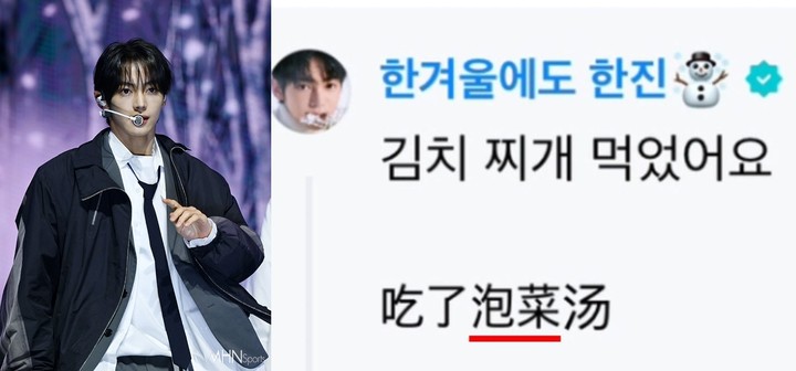 "김치는중국꺼"취지주장도나와투어스중국멤버한잔이지난1일팬소통커뮤니티플랫폼'위버스'에김치를'파오차이'라표기했다.(MHN스포츠이준기자)남자아이돌그룹투어스내중국인멤버한진이김치를'파오차이'라오기해논란이일자중국내에서는"김치는파오차이"라며한진을옹호했다.5일서경덕교수는사회관계망서비스(SNS)를통해"한국의김치와중국의'파오차이'는엄연히다른음식"이라며"중국은김치의원조가파오차이라며자신들의문화라고억지주장을펼치고있다"고강조했다.그러면서"이런상황속에서중국인멤버한진이김치를파오차이로표기한건정말로잘못한일"이라며"대외적인영향력이큰스타이기에좀더신중했어야했고,한국인들의문화적정서를헤아릴줄알아야만했다"고지적했다.앞서한진은최근팬소통커뮤니티플랫폼'위버스'를통해"김치찌개먹었어요"라며한국어와중국어동시에다만,한진은김치를중국식표현인'신치(辛奇)'가아닌,'파오차이(泡菜)'로적어한국네티즌들의뭇매를받았다.결국해당댓글은삭제됐다.문화체육관광부는지난2021년'공공용어의외국어번역및표기지침'을개정하면서김치의올바른중국어표기를'신치'로정했다.그전까지는중국내'절인야채절임'을뜻하는파오차이로통일해표기했으나,파오차이와김치는차이가존재하기에차이를두었다.투어스한진의'파오차이'논란에중국네티즌들이한국네티즌들을저격했다.한편,해당소식이중국에전해지자현지네티즌들은"억압적인권력아래어쩔수없이따라야하는불쌍한사람","삭제했는데도사과요구하네","앞으로항상파오차이라불러야한다","김치는파오차이다"라며한국네티즌들을비꼬았다.일부는"김치너무많이먹어서뇌까지망가진거아니냐"며격앙된모습을보이기도했다.이외에도"한국인들은뭘그렇게자꾸훔쳐가냐.이름만바꿨다고자기네거가되는줄아냐"며김치가중국문화라는취지의주장을펼치기도했다.사진=MHN스포츠DB,온라인커뮤니티Copyright©MHN스포츠.무단전재및재배포금지.