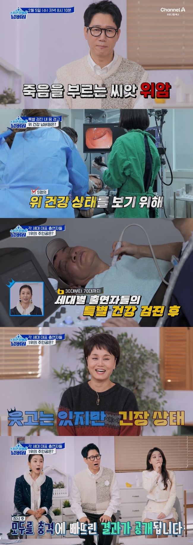 채널A‘스타건강랭킹넘버원’제공[뉴스엔김명미기자]신개념건강프로그램채널A‘스타건강랭킹넘버원’이베일을벗는다.2월5일오후8시10분첫방송예정인채널A‘스타건강랭킹넘버원’의첫번째주제는대한민국암발생률1위인‘위암’이다.이날방송에서는죽음의씨앗이라고도불리는질병인위암에대해알아보고,출연진들의위내시경검진결과를바탕으로스타들의실제위(胃)건강랭킹이최초공개된다.위내시경검진결과를공개하기에앞서,50대지석진은10여년전헬리코박터균감염과십이지장궤양을앓은적이있어서위건강이걱정은되지만한다감만은이길수있다며자신만만한모습을보인다.반면위암,십이지장궤양가족력을밝힌40대한다감은평소자주체기를느끼며소화불량을달고살았다고덧붙이며불안한기색을내비친다.50대지만40대한다감만은이길수있다는지석진과건강염려증이있다는40대한다감.두사람은첫녹화부터티격태격하는앙숙케미는물론넘치는예능감으로안방극장을장악할예정이다.또한50대를대표하는이경실은“내가방송국에들어오지말았어야했다”라며검진결과에대한긴장감에울먹이기까지했다는데.평생위가아팠던적이없다는70대독고영재는누구보다기세등등한모습으로랭킹결과를예측할수없게만들고,출연진중가장젊은30대황유주는20대에대장용종을제거하고급성위염으로응급실까지실려간적있다밝히며예측불허한건강랭킹에한층더궁금증을불러일으킨다.온탕과냉탕을오가는긴장감속독고영재,지석진,이경실,한다감,황유주중과연‘위암의위험성이가장높은위(胃)건강랭킹1위’는누구일지궁금증을자아내는가운데,반전넘치는특별검진결과로출연진은물론스태프들까지모두가놀랐다는후문이다.뉴스엔김명미mms2@기사제보및보도자료[email protected]ⓒ뉴스엔.무단전재&재배포금지Copyright©뉴스엔.무단전재및재배포금지.