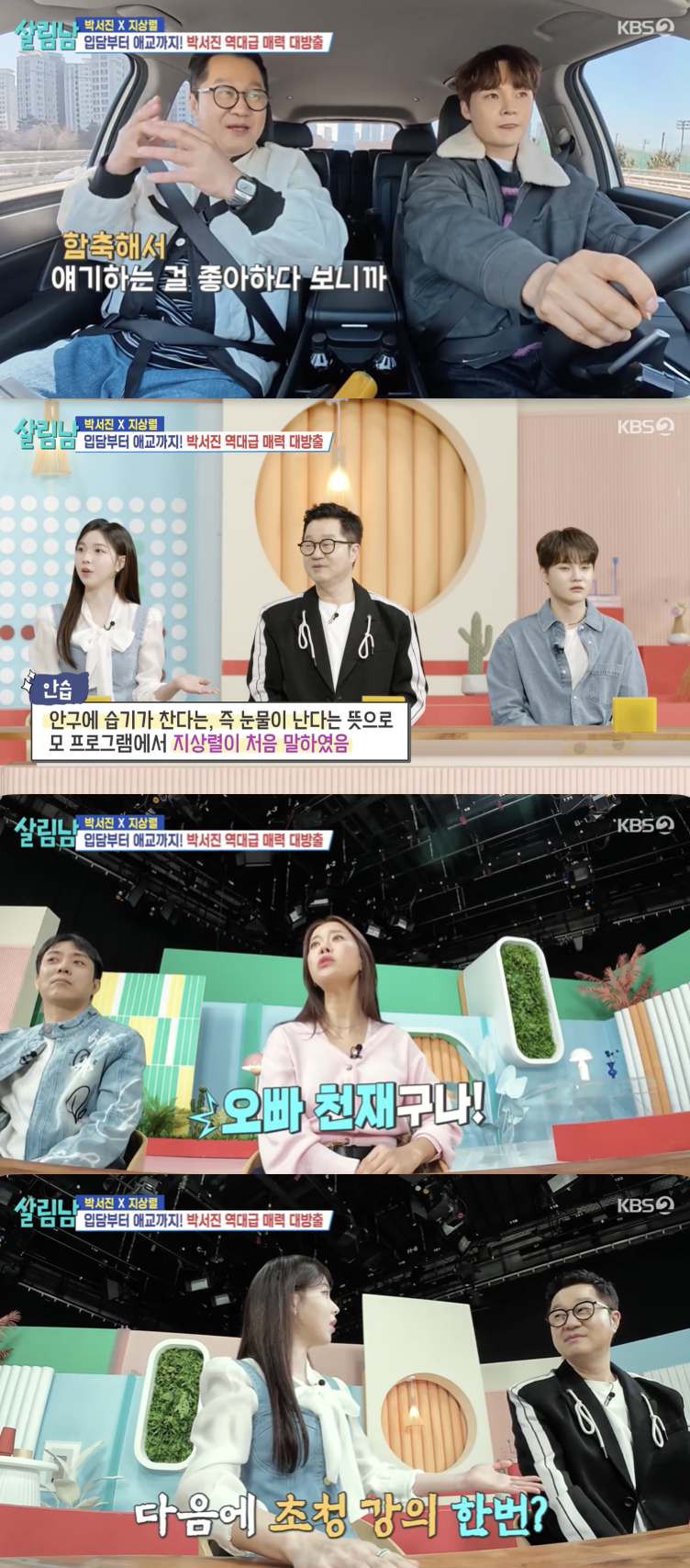 [스타뉴스|정은채기자]/사진='살림남'방송화면캡쳐개그맨지상렬이뛰어난언어창조능력을뽐냈다.8일방송된KBS2TV'살림하는남자들시즌2'에서는박서진이지상렬의인천집에방문한모습이그려졌다.꽃다발과선물을들고밝은미소로누군가의집에방문한박서진의모습이포착됐다.그는"태어나서처음으로가까워지고싶은분한테초대를받았다"며"같이있으면미소짓게만들고왠지모르게기분이좋아진다.제인생에서놓치고싶지않은사람"라며'강아지상'을한자신의이상형을만나러간다고전해궁금증을자아냈다.이어등장한박서진의이상형은다름아닌개그맨지상렬이었다.이를스튜디오에서지켜본백지영은"'강아지상'이아니라'개상'"라고정정해웃음을안겼다.한편박서진은"형님은원래태어날때부터갑상선을타고났냐"라며재치있는단어를활용해이야기하는'지상렬표'입담의비결에대해질문했다.이에지상렬은"함축해서얘기하는걸좋아하다보니까그쪽으로발전했다"라고답했다.그런가하면KBS아나운서정은혜는한때유행했던'안습'(안구에습기)역시지상렬이만든단어라고밝혀모두를놀라게했다.이에백지영은"오빠천재구나"라고감탄했고,정혜선은"제가한국어연구부에서일하고있다.다음에제가초청할테니강의한번해보겠냐"라고제안했다.정은채기자[email protected]©스타뉴스&starnewskorea.com,무단전재및재배포금지