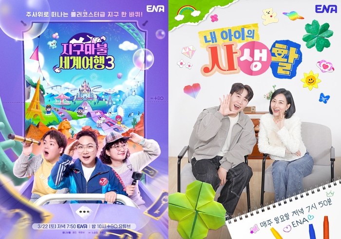 ‘지구마불3’,‘내생활’포스터.사진|ENAENA가강력한주말예능라인업을구축한다.ENA는오는22일오후7시50분과23일오후7시50분각각출격을앞둔‘지구마불세계여행3’,‘내아이의사생활’로주말예능강화에나선다.ENA와TEO의예능프로젝트‘지구마불세계여행’은여행크리에이터3대장빠니보틀(빠니보틀PaniBottle),원지(원지의하루),곽튜브(곽튜브KWAKTUBE)가김태호PD에의해설계된세계여행부루마불게임에참여해주사위에운명을맡기며세계각지를여행하는과정을담은예능프로그램이다.시즌1에서는주사위한번에대륙을넘나든다는신선한설정으로여행예능의새역사를썼고,시즌2에서는보드판곳곳에숨겨진히든룰과미션을추가해예측불가능한어드벤처의재미를극대화하며시청자들의여행욕구를자극했다.이러한독창적인콘셉트와흥미진진한전개로큰사랑을받아시즌1,2통합최고시청률3.3%를기록하며ENA대표예능으로자리매김했다.그뜨거운성원에힘입어‘지구마불세계여행3’이오는22일토요일오후7시50분,‘지구마불테마파크’라는새로운콘셉트로더익스트림하고다이나믹하게돌아온다.앞서테마파크를대표하는놀이기구인롤러코스터를탄‘곽빠원’의설레는모습으로출발을알린메인포스터와함께,액티비티파크,푸드페스타,주토피아,판타지월드등다채로운‘지구마불테마파크’를담은티저영상이공개돼기대감을높인바.이번시즌에서는전세계를거대한놀이공원으로삼아주사위로떠나는롤러코스터급지구한바퀴여행이시작된다.여기에‘곽빠원’조차예상치못한여행파트너를비롯해여행의판도를흔들‘구름희’의등장까지예고되며강렬한재미를예감케한다.한편,‘내아이의사생활’은재정비를마치고오는23일일요일오후7시50분에첫방송된다.지난해9월도도남매(도연우,도하영)의미국영재캠프참가기,러브유(추사랑,유토)의특별한홍콩여행,언어천재스타베이비태하의활약등어른들은모르는아이들의‘사생활’로수많은명장면과화제의클립을탄생시켰다.이에유튜브클립영상은꾸준히‘인급동’(인기급상승동영상)에오르며큰관심을받았고,ENA공식인스타그램에게재되는릴스영상들도모두높은조회수를기록했다.도도남매의미국여행기영상은총1000만이상의누적조회수를,어느새훌쩍큰사랑이의킥복싱실력을보고추성훈이눈물을흘리는장면을비롯해사랑이와유토의여행에피소드역시총600만이상의누적조회수를기록하며폭발적반응을얻었다.그리고이번에는한층더성장한아이들의사생활을담아다시돌아온다.이와관련,앞서공개된티저영상에서는12년지기추사랑과유토의화보촬영현장이청춘영화같은설렘을자아내고,베트남에서야생원숭이와맞닥뜨린도도남매의예측불가한여행기가펼쳐지며흥미를더한다.또한,먹방요정으로떠오른뉴페이스도아와골프유망주로성장한송지아의근황이공개되며,한층업그레이드된재미와감동을예고하고있다.새로운에피소드와더욱깊어진아이들의성장스토리로랜선이모-삼촌들의가슴을뛰게할‘내아이의사생활’이또어떤재미로일요일저녁을가득채울지기대를모으는대목이다.ENA신재형콘텐츠전략센터장은“ENA만의시즌제프로그램주말편성으로남녀2049시청층공략예정이다”며“토요일저녁은‘지구마불세계여행3’의3대장‘곽빠원’의익스트림한모험으로짜릿한재미를,일요일저녁은‘내아이의사생활’속아이들의반짝이는성장스토리로감동과웃음을보장한다.ENA가준비한강력한주말예능과함께주말저녁즐겁고행복한에너지를비축하시길바란다”고말했다.‘지구마불세계여행3’은오는22일ㅇ후7시50분,‘내아이의사생활’은이튿날인23일오후7시50분ENA에서첫방송된다.[김소연스타투데이기자]Copyright©스타투데이.무단전재,재배포및AI학습이용금지