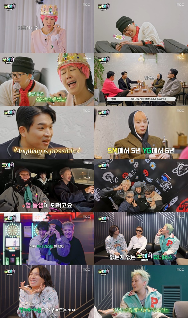 굿데이지드래곤/사진=MBC[스포츠투데이서지현기자]그룹빅뱅지드래곤이'굿데이'에대한부담감을토로했다.지난9일방송된MBC'굿데이(GoodDay)'4회에서는올해의노래를완성하는음악프로젝트를위해홍진경,안성재셰프,세븐틴유닛부석순,빅뱅의태양과대성등다양한분야의인물들을만나는지드래곤의이야기가그려졌다.이날방송에서는드디어윤곽을드러낸음악프로젝트와함께후보곡리스트까지공개됐다.최고의1분은지드래곤이태양콘서트를찾아빅뱅멤버들과만나는장면으로최고4.8%까지치솟았다.(닐슨코리아수도권기준)지드래곤의오랜찐팬인홍진경은데프콘,조세호,기안84와함께자신의집을찾은지드래곤을향해아낌없는팬심을드러냈다.지드래곤과둘만의시간을보내며진정한성덕이되기도했지만설렘도잠시,난데없는상황극이시작=됐다.홍진경의'굿데이(GoodDay)'합류를향한셀프오디션도눈을뗄수없게했다.홍진경은지드래곤의'MAMA'무대의상을입고긴팔다리를휘적이며메들리퍼포먼스를선보였고,지드래곤과MC들은단체로'웃참'에실패했다.홍진경은지드래곤이피처링한아이유의'팔레트'를선곡해지드래곤과꿈의듀엣무대를선보였다.지드래곤은오디션결과에대해"함께하는것이중요하다"라고에둘러대답했지만,홍진경은합격여부에집착했다.기안84는"뽑는게아니지않나.부르는날가서그냥부르면된다"며자신이이해한기획의도를공유하며홍진경을안심시켰다.수많은유행어와함께2024년을빛낸'흑백요리사'출신안성재셰프와의만남역시이날방송의하이라이트였다.'흑백요리사'출연후예능출연이전무했던안성재셰프는어디에서도들어본적없는진솔한토크로관심을모았다.13살때미국으로이민을떠난뒤자동차정비공을꿈꿨던사연부터24살처음요리에입문하게된계기,업계최고스승에게배워레스토랑개업1년만인35살에미슐랭스타를받기까지의여정을풀어냈다.특히안성재셰프가꿈을위해2년동안걸레질을했던기간을회상하자,지드래곤역시11년의연습생생활을털어놓으며공감대를형성했다.요리와음악에서정점을찍은두사람은웬만해선흔들리지않는가치관을비롯해여러모로닮은점이많았다.안셰프는'흑백요리사'출연전후로달라진점에대해다른식당에가도평가를하지않고응원하게된다고밝혔다.또한자신의가게단골인태양과의닮은꼴에피소드를비롯해딸의운동회에가서뽀로로이후초통령이된사연을공개했다.지드래곤은"신의한수같았던멋진답변들이(초등학생들에게도)신선하게느껴지지않았을까"라고인기이유를분석했다.'굿데이(GoodDay)'취지에깊이공감해합류를결정했다는안성재셰프는이날노래에대한부담감을표하기도.다음으로지드래곤이만난주인공은2024년을빛낸가요계후배세븐틴유닛부석순(승관,도겸,호시)이었다.지드래곤은부석순멤버들의감당불가한하이텐션에말을잇지못하는모습으로웃음을자아냈다.연습생시절을함께한지드래곤명곡을함께들으며폭발적인팬심을표출한부석순멤버들은지용이형과네컷사진찍기,지용이형과맛있는거먹기,지용이형과연락처주고받기등그동안꿈꿔온위시리스트를하나씩실행해갔다.부석순은내친김에또하나의위시리스트인'청바지챌린지'참여까지유도했다.얼떨결에인생두번째챌린지에참여하게된지드래곤은"내거찍으러온거아니야?"라고말하면서도막상촬영에돌입하자열정적으로후배들을도와'힙한'챌린지영상을뚝딱만들어냈다.지드래곤은"형에게한걸음더다가갔다"라는후배들을향해혼이나간표정으로"반걸음만와줘"라고말해폭소를안기기도.부석순은닮고싶은선배지드래곤과함께빅뱅의'WELIKE2PARTY'를함께부르며음악으로하나되는모습으로훈훈함을전했다.'굿데이(GoodDay)'를통해다양한분야의사람들을만나많은영감을얻은지드래곤은곡을작업해야하는시점이다가오자단체곡구체화에대한부담감과고민을토로했다.이에지드래곤이음악적영감을얻기위해만난인물은바로K-POP대표아이콘이자19년을함께한빅뱅멤버들이었다.태양의콘서트장을찾은지드래곤은빅뱅멤버태양과대성을만나음악프로젝트에대한이야기를꺼냈다.태양과대성은안성재셰프가노래를어려워한다고하자안셰프의유행어'이븐'EDM버전을아이디어로제시하는등무궁무진한아이디어를쏟아냈다.장난스럽지만사소한발상도허투루지나치지않는멤버들의팀워크에지드래곤은"우리팀너무좋다"라며흡족한미소를감추지않았다.선곡에대한고민도빠르게해결됐다.지드래곤은방송말미고민끝에정한후보곡리스트를공개했다.황정민의추천을받았던정훈희의'꽃밭에서'부터빅뱅멤버들의추천을받은조용필의'바람의노래',김연자의'아침의나라에서'그리고기획초기단계부터생각했던도시아이들의'텔레파시',서태지와아이들의'발해를꿈꾸며'까지총5곡이다.과연지드래곤이다섯곡의명곡들가운데어떤곡을선택할지기대감을더한다.[스포츠투데이서지현기자[email protected]]Copyright©스포츠투데이.무단전재및재배포금지.