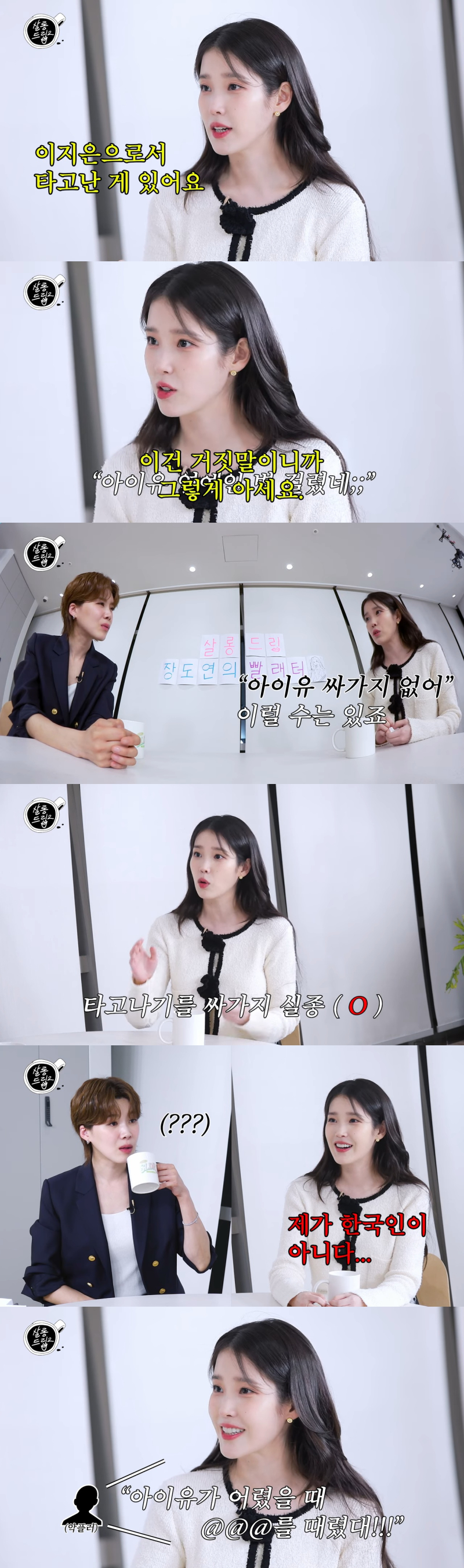 ‘살롱드립2’방송캡처.가수아이유가연예인병이없다고강조했다.11일유튜브채널테오의‘살롱드립2’에는“아이유아이유하는이유”라는제목의영상이게재됐다.공개된영상에서는지난7일공개된넷플릭스오리지널시리즈‘폭싹속았수다’로활약하고있는아이유가출연해장도연과이야기를나눴다.이날아이유는“제가이지은으로서잘타고난게몇가지가있다.그중하나가자기객관화”라며“누군가가저를흉을볼수있다.그런데그사람이‘아이유가연예인병에걸렸다’고하면거짓말이니까그렇게알아야한다.그건성립이안된다.저는제가잘났다고생각하지않는다”라고말했다.그러면서“어디서저한테싸가지없다고할수는있다.그건그냥제가싸가지가없는것이다.연예인병때문에싸가지가없는게아니라타고나기를싸가지없이태어난것”이라고설명했다.아이유는“또타격을크게안받는다.그것도운이다"”라며“‘제가한국인이아니다’라는댓글도있었다.못생겼고노래못하고연기못하는이런거는괜찮다.악플로생각하지않는다”고했다.이어“그런데제가하지않은것을했다고하는것은제재가필요하다고생각했다”고덧붙였다.이수진기자[email protected]©일간스포츠.무단전재및재배포금지.