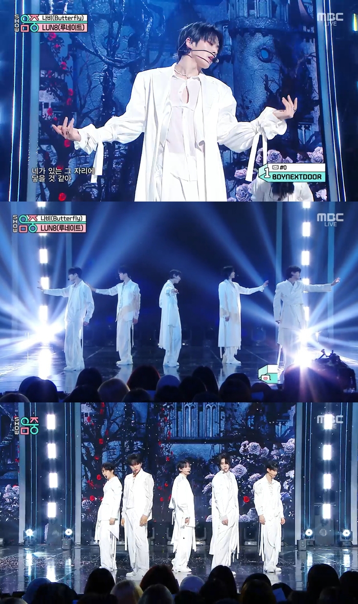 MBC‘쇼!음악중심’방송화면캡처아이돌그룹루네이트(LUN8,판타지오소속)가아름다운퍼포먼스로깊은몰입감을선사했다.루네이트는22일방송된MBC음악방송프로그램‘쇼!음악중심’에출연해새싱글앨범‘나비’의동명의타이틀곡무대를펼쳤다.루네이트는긴끈으로포인트를준올화이트스타일링에동양화를찢고나온비주얼로시선을사로잡았다.루네이트는한층더깊어진팀워크와케미스트리로섬세하게‘나비’를표현하며완성도높은무대를꾸몄다.루네이트는아름답고부드러운춤선으로이목을사로잡았다.한마리나비가날갯짓을하듯펼쳐내는퍼포먼스가무대를가득채웠고,아련한눈빛과표정연기로한편의영화같은몰입감을선사했다.꽃이피듯이휘날리는손동작의포인트안무가강한중독성을유발했고,높이점프하는안무가역동성을더했다.‘나비’는지난해8월발매한세번째미니앨범‘AWAKENING’(어웨이크닝)이후약6개월만에선보이는신보이며,동명의타이틀곡‘나비’는동양적인색채가돋보이는힙합스타일의곡이다.‘네가없는곳일지라도,어떤상황에서도너하나였고,너를그리워한다’는화자의절절함이더해져하나의장면처럼그려지는이별과상실의감정을매혹적으로표현했다.신곡‘나비’로활동을이어가고있는루네이트는오는4월19일바르샤바를시작으로22일베를린,24일쾰른,27일마드리드,29일암스테르담등각지역에서데뷔2년여만에단독콘서트를개최한다.손봉석기자[email protected]©스포츠경향.무단전재및재배포금지.