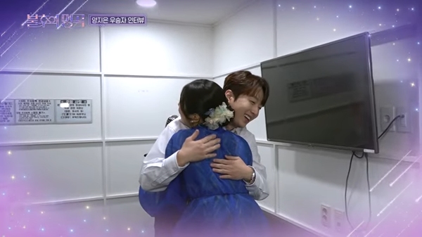 사진출처=KBS2제공/'불후의명곡'방송화면.[스포츠한국이유민기자]가수양지은이'불후의명곡'에서첫우승을거머쥔후,MC이찬원에게감사의마음을전했다.8일방송되는KBS2TV예능프로그램'불후의명곡'은'불후드웨이'특집으로꾸며지며,박경림이스페셜MC로나선다.이번방송에는최정원&정영주,이지훈&손준호,세븐&진진,켄&케이,양지은&김다현등이출연해뮤지컬무대를선보인다.양지은은그동안아홉차례도전했으나단한번도우승을차지하지못하다가,지난'아티스트노사연&최성수'편에서처음으로우승트로피를손에쥐었다.그는"매번출연할때마다트로피를받으면어떤기분일까궁금했는데,막상받고나니눈물이났다.'불후의명곡'무대를준비하며지나온시간들이주마등처럼스쳐지나갔다"고감격스러운소감을전했다.사진출처=KBS2제공/'불후의명곡'방송화면.특히,그는절친한동생이자프로그램MC인이찬원에게특별한감사를표했다.양지은은"제가우승하고울고있는데,찬원씨가제일먼저대기실로달려와축하해줬다"며고마움을전했고,이에이찬원은"정말울고계시더라"며당시상황을회상해훈훈한분위기를자아냈다.양지은은이어"트로피를품에안고하늘에계신아버지께자랑하듯행복하게돌아왔다"며우승의의미를더욱깊게만들었다.사진출처=KBS2제공/'불후의명곡'방송화면.함께출연한김다현은"뮤지컬경험이전혀없어서새싹이밟히면어쩌나하는걱정이들었다"면서도"좋은무대를볼수있다는것만으로도감사하다"고겸손한태도를보였다.두사람은이날뮤지컬'서편제'의'길을가자'와'살다보면'무대를꾸밀예정이다.양지은은"다현양과나는국악을오래했기때문에,그런부분에서선배님들과경쟁해볼수있을거라생각했다"며기대감을드러냈다.과연'뮤지컬새싹'으로나선양지은과김다현이어떤무대를펼칠지관심이집중된다.스포츠한국이유민기자[email protected]©스포츠한국.무단전재및재배포금지.