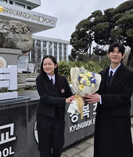 5일열린서울선화예고입학식에서만난개그맨박준형-김지혜부부의딸(왼쪽)과개그맨박성호의아들.사진김지혜SNS캡쳐한때KBS2‘개그콘서트’에서함께활동했던개그맨박준형과박성호가학부모로서도인연을이어가게됐다.개그맨박준형과개그우먼김지혜그리고개그맨박성호의자녀들이나란히같은고등학교에입학했다.김지혜는5일자신의사회관계망서비스(SNS)계정에“박준형딸과박성호아들이이런인연으로~같은고등학교입학~신기신기”라는글과함께딸의입학식사진여러장을올렸다.5일열린서울선화예고입학식에서만난개그맨박성호(왼쪽)와개그우먼김지혜.사진김지혜SNS캡쳐사진에는김지혜의딸과박성호의아들이꽃을든채수줍은미소를짓고있다.입학식장에서박성호부부와만난김지혜의모습도포함됐다.박준형과박성호는1997년KBS13기로개그맨데뷔동기다.둘은1999년시작된‘개그콘서트’에서초창기‘청년백서’코너에함께출연하며“개그는개그일뿐,따라하지말자”라는유행어를만들기도했다.박준형과김지혜는2005년결혼해두딸을두고있다.앞서김지혜는딸혜이의선화예고합격소식을전했다.박성호의아들역시선화예고에합격한것으로알려져둘은학부모로서도동기로만나게됐다.하경헌기자[email protected]©스포츠경향.무단전재및재배포금지.