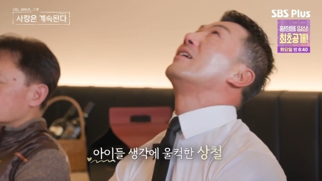 [OSEN=오세진기자]‘나는SOLO,그후사랑은계속된다’10기상철이자녀유무에대해말하면서눈물을보였다.6일방영한ENA,SBSPlus예능‘나는SOLO,그후사랑은계속된다’(이하‘나솔사계’)에서는10기상철이22기정숙의부모님을뵈었다.22기정숙의외삼촌부부와사촌동생까지등장하면서,본격적인상견례모습을띠었다.정숙은“오늘엄마생신이기도하다.그래서다들엄마생신축하겸한번상철을보여주고싶었다”라고말했다.정숙의어머니는“긴장되냐”라고묻더니“형제관계는어떻게되냐”,“부모님은다계시냐”,“원래성격이다정하냐”라며이것저것을물었다.10기상철은여러가지질문에답을하던중자녀들이있다는사실을털어놓았다.이에정숙의어머니는“내딸이너무불리한데?상철은돌아갈자식이있는데,내딸은자식이없다”라면서“아빠가여자친구생긴것도안좋아할수있지않냐”라며걱정했다.상철은눈물을조금보이다가"죄송하다.제가아이들이야기를하면눈물이난다"/[email protected][사진]ENA,SBSPlus예능‘나는SOLO,그후사랑은계속된다’Copyright©OSEN.무단전재및재배포금지.