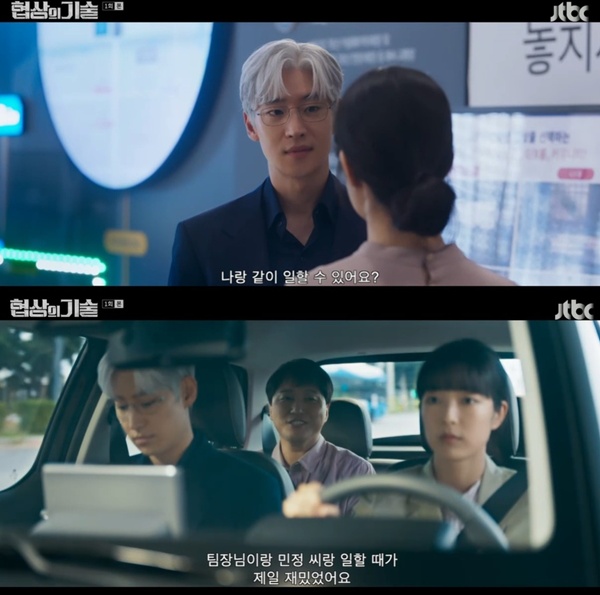 협상의기술첫방/사진=JTBC캡처[스포츠투데이임시령기자]'협상의기술'이제훈이안현호,김대명에게팀원으로스카우트했다.8일첫방송된JTBC새토일드라마'협상의기술'에서는전설의협성가윤주노(이제훈)가팀원을꾸리는모습이그려졌다.이날신한그룹회장송재식(성동일)은윤주노가도착하자"니자신있나"라고물었다.윤주노는"자신있다.팀원이필요하다"고얘기하며"팀원뽑으러가겠다.지원하신분면접하겠다"고말한뒤자리를떠났다.이때최진수(차강윤)인턴은자신있게윤주노팀원을자원했다.이모습을임형섭은최진수에게"넌이제끝난것"이라며답답해했다.이후윤주노는옛M&A팀원곽민정(안현호)을만나"나랑같이일할수있냐"며합류제안을했다.변호사오순영(김대명)도"예전에함께일했을때재밌었다"며윤주노와곽민정을반겼다.[스포츠투데이임시령기자[email protected]]Copyright©스포츠투데이.무단전재및재배포금지.
