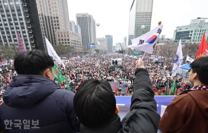 광화문6만4000명,여의도4만5000명집결인파몰려광화문역열차무정차하기도1일서울종로구동화면세점앞및광화문일대가자유통일당주최윤석열대통령지지집회인'3·1절광화문국민대회'에참석한시민들로가득차있다.최주연기자3·1절인1일오후서울광화문과안국동사거리,여의도등서울도심에서윤석열대통령탄핵찬반을주장하는대규모집회가열리고있다.광화문에선오후1시부터전광훈사랑제일교회목사가주도하는'자유통일을위한국민대회'가열렸다.오후3시기준광화문에는집회에는약6만4,000명(경찰비공식추산)이모였다.집회가본격적으로시작하기전부터광화문역,종각역인근대로에는관광버스가빽빽히들어섰다.각지명을버스에달고상경한관광버스에선집회참석자들이태극기와성조기를들고빠져나왔다.집회가시작되자참석자들은'불공정한헌재소장문형배사퇴하라''STOPTHESTEAL'(부정선거멈춰라)등피켓을들고구호를외쳤다.윤대통령국민변호인단장을맡은석동현변호사가무대에올라"대통령께서는(집회소식에)정말한없는감사의표정으로'나는건강하다.잘있다'는인사를꼭전해달라고하신다"고전하자환호성이터져나오기도했다.1일서울세종대로에서열린대한민국바로세우기국민운동본부윤석열대통령탄핵반대집회에경찰차벽이세워져있다.연합뉴스같은시각손현보세계로교회가목사가이끄는세이브코리아는여의도공원일대에서'국가비상기도회'를열었다.참석자는4만5,000명(오후3시10분기준)으로추산됐다.이들은태극기와세이브코리아깃발을흔들며'탄핵기각'등을외쳤다.이자리에는나경원·김기현의원등국민의힘의원30여명이참석했다.일부의원은직접무대에올라발언하기도했다.촛불행동의탄핵찬성집회는오후2시부터종로구안국동사거리에서열렸다.참석자들은'윤석열파면''국힘당(국민의힘)해산'등이적힌피켓을들고'내란수괴윤석열을즉각파면하라'고외쳤다.이어오후3시부터는같은장소에서더불어민주당등야5당이'윤석열촉구범국민대회'를진행하고있다.이어오후5시에는윤석열즉각퇴진·사회대개혁비상행동(비상행동)이종로구사직로에서범시민대행진을이어간다.인파가몰리면서이날오후2시46분부터11분동안지하철5호선광화문역에서열차가무정차통과하기도했다.경찰은기동대91개부대,5,400여명을집회현장에투입해충돌상황등에대비하고있다.1일오후서울영등포구여의도여의대로에서열린'세이브코리아3·1절국가비상기도회'에서참석자들이윤석열대통령탄핵기각을촉구하고있다.뉴시스손영하기자[email protected]김태연기자[email protected]©한국일보.무단전재및재배포금지.