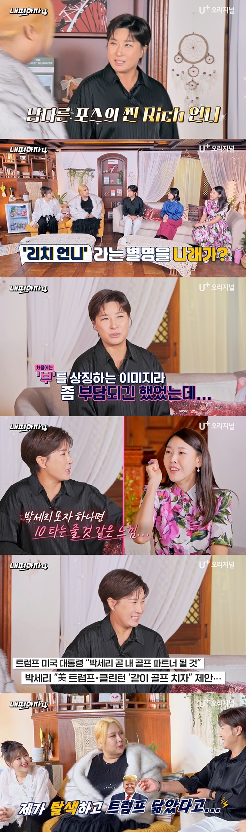 박세리/사진=STUDIOX+U기획제작[스포츠투데이백지연기자]‘리치언니’박세리가털털한동네언니같은반전매력으로‘내편하자4’4MC를사로잡는다.18일공개되는U+오리지널예능‘내편하자4’10회에서는세계적인골프레전드이자예능계까지섭렵한’리치언니’박세리가스페셜게스트로출연한다.이날‘리치룩’콘셉트에맞춰드레스코드를선보인한혜진,박나래,풍자,엄지윤은찐‘리치언니’박세리가등장하자“역시진짜부자는다르다”라며감탄을금치못했다.박나래가지어준‘리치언니’라는박세리의별명탄생비화도공개됐다.박세리는“처음에는부담스러웠는데재능이많고넉넉한마음이있다는것으로생각하니마음에들었다”라며별명에대한솔직한속내를밝혔다.‘마음부자’박세리에게깊이감명받은풍자는‘리치언니’라는별명에는‘나도언니처럼성공하고싶다’는동경의의미가담겨있다고했다.그런가운데엄지윤은박세리를위해‘리치언니’열풍을이어갈새로운별명을지어주겠다나섰고‘청담동’느낌물씬나는새별명을들은박세리는웃음을터트리며흡족해했다고해대체어떤별명일지궁금증을불러일으킨다.한편,‘골프여제’박세리를향한전세계적인러브콜도화제에올랐다.박나래가트럼프미국대통령이함께골프를치고싶어했다는기사를소개하자풍자는자신이트럼프닮은꼴이라며대타알바를뛰겠다고나서폭소를자아냈다.그런가하면“그늘집에서막걸리를먹나요?”라는MC들의질문을받은박세리는“저도지인들과골프장에가면전과막걸리를먹는다”라며친근하고털털한옆집언니같은반전매력을발산했다고해본방송에대한관심을수직상승시키고있다.‘골프여제’박세리의시원한입담과4MC의유쾌한케미가빛난‘내편하자4’10회는18일(화)0시U+tv와U+모바일tv에서만날수있다.[스포츠투데이백지연기자[email protected]]Copyright©스포츠투데이.무단전재및재배포금지.