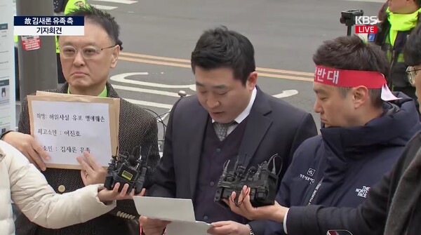 아이즈ize이덕행기자/사진=KBS유튜브故김새론의유족이유튜버이진호를명예훼손혐의로고소했다.또한김수현에대해서도추가적인법적조치를검토중이라고덧붙였다.故김새론유족측은17일오후서울경찰청에허위사실에의한명예훼손혐의로이진호에대한고소장을제출했다.유족측법률대리인인법무법인부유부지석변호사와권영찬한국연예인자살예방협회소장,유튜브가로세로연구소김세의대표는고소장제출에앞서기자회견을통해입장을전했다.부변호사는"마음같아서는살인죄를적용하고싶다"며"고인의죽음이이진호의유튜버의허위사실유포와인과관계가있다는사실이양형에최대한반영되어엄한처벌이이루어지기를바란다"고전했다.이어"고인이과거연인이었던김수현과의사진을올린이유는연락을취해봤으나답변이없자과거사진을올리면연락이오지않을까하는생각에잠시사진을올린것"이라며"이진호는고인과김수현의과거연인사이를부정하고이에더나아가고인이이상한여자로비치게끔허위사실을유포했다.고인이극단적선택을할수밖에없을정도로고인을극심한정신적고통에시달리게몰아간것"이라고지적했다.부변호사는"이진호의허위사실을입증하기위해교제사실을알리고과거사진을공개할수밖에없었다"며"영상을삭제하는것은증거인멸에해당한다.이진호에대한압수수색과구속수사를촉구한다"고전했다.한편,유족측이고소장을제출하던시점이진호역시유튜브를통해자신의입장을밝혔다.이진호는"단한차례도영상이나방송에서김새론과김수현이자작극이라고밝힌바가없다"라는입장을전했다.이외에도자신을향한의혹에반박하며"저역시부득이법적조치를할수밖에없다.제가가진증거와자료를통해스스로의무고함을밝히겠다"라고밝혔다./사진=이진호유튜브이날고소장은유튜버이진호에게만국한됐지만,김수현에대한유족의입장도확인할수있었다.특히부변호사는김수현의소속사골드메달리스트가김수현에게내용증명을한차례가아닌두차례보냈다고폭로했다.부변호사는"1차내용증명이후고인이김수현에게살려달라는문자를보내자연락한통없었고,소속사를통해2차내용증명을보냈다"라고설명했다.부변호사에따르면두번째내용증명에는고인에게기간을줄테니채무를반드시변제하라는내용이담겨있고,김수현및소속사배우들과직접연락하지말라는내용,사진을올린것에대한법적대응을하겠다는내용이담겨있었다.권영찬소장은"김새론이이사를앞두고있었다.창고에보관되어있던이삿짐을풀다가2차내용증명을확인했다.향후SNS에사진을올리거나,소속사배우와접촉하거나'눈물의여왕'이손해를보면전액배상을청구하겠다는내용이담겨있다"고주장했다.부변호사는"고인이생전이런내용증명을받고얼마나심적고통을받았을지미루어짐작조차하기힘들다.왜지금에야와서공개적입장문으로유족측의연락을기다리는지알수없다"라며향후김수현측에대한법적대응을검토중이라고밝혔다.김세의대표는"故김새론이중학교2학년이던2015년부터6년간교제했던사실을인정하라"며진정성있는공개사과를촉구했다.Copyright©ize&ize.co.kr,무단전재및재배포금지