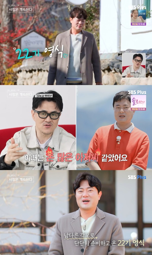 (엑스포츠뉴스이유림기자)'나는솔로'3기영수가달라진모습으로등장했다.13일방송된ENA와SBSPlus의‘나는SOLO,그후사랑은계속된다’(이하‘나솔사계’)에서는‘솔로민박’최초로‘골드’와‘돌싱’이총출동한‘골싱특집’이화려하게시작됐다.이날오프닝에서데프콘은결혼을꿈꾸는'골드'와'돌싱'이모인'골싱특집'이라고예고했다.처음으로등장한솔로남은3기영수였다.오랜만에나온영수는당시'나는솔로'3기방송과는달리안경을쓰며사뭇달라진인상에눈길을끌었다.많이달라졌다는제작진의말에그는"사실그때나름대로방송에나간다고조금포멀하게한답시고렌즈도끼고,머리도올렸다"며"이게사실제평상시모습이다"고전했다.이어3기영수는"사람들이왜이렇게하고나가지그랬냐고하더라"며주변인의권유로나솔사계에서는꾸밈없는그대로의모습으로나왔다고덧붙였다.결혼에대해그는"이제진짜마지막"라며"내년까지최선을다해서갔다오더라도한번가봐야한다"고포부를밝혔다.그러면서3기영수는"친한한의사형님이있는데49세에딸을낳아서지금키우고있는데너무행복해보이는거다"며자신도그런삶을살고싶다는바람을드러냈다.사진=SBSPlus방송화면이유림기자[email protected]©엑스포츠뉴스.무단전재및재배포금지.