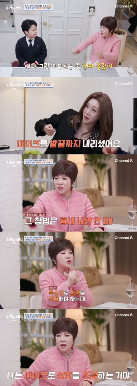 [OSEN=임혜영기자]김연자가블루투스창법에대해언급했다.17일방송된채널A'절친토큐멘터리-4인용식탁’(이하4인용식탁)에는김연자가출연,트로트후배홍지윤(30대),김소연(20대),황민호(10대)를절친으로초대해세대대통합을이루었다.홍지윤,김소연은김연자의블루투스창법을언급핬다.김연자는“내가그렇게부르는줄몰랐다”라고설명하며민망해했다.홍지윤은“‘아모르파티’하는걸봤는데마이크를발끝까지내리시더라”라고설명을덧붙여웃음을자아내기도.이에김연자는“좋은방법이아니다.흉내내면안된다.가수가목소리로성량을조절해야한다.나는그게하기싫어서마이크를떨어뜨리는것이다.솔직히목에도안좋다.언제부터인가그렇게되어버렸다”라고설명했다./[email protected][사진]채널A'절친토큐멘터리-4인용식탁'Copyright©OSEN.무단전재및재배포금지.