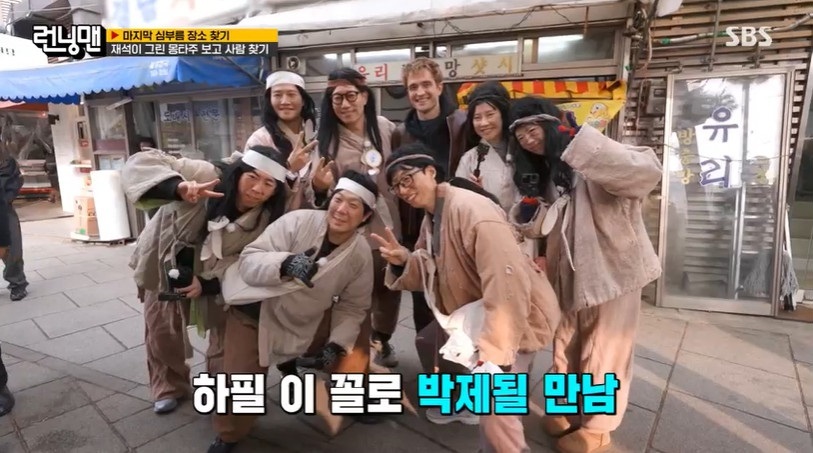 [OSEN=김수형기자]'런닝맨'에서로버트패틴슨이깜짝등장해모두를반갑게했다.9일방송된SBS예능'런닝맨'에서할리우드배우로버트패틴슨이출연했다.이날멤버들이전원노비가되어대감님의심부름을수행하는레이스로통인시장을나선가운데제작진은"저기할리우드배우로버트패틴슨촬영중이라더라"고말했다.100%실제상황.멤버들도제작진도모두몰랐던것이다.서울한복판에서우연히할리우드배우로버트패틴슨을만나게된멤버들은"근데우리이러고만들어도되나,'런닝맨'다알까"라며걱정,"반갑긴한데이꼴로?"라며노비분장에대해창피해했다.아니나다를까거지분장이신경쓰인멤버들은통역사에게"우리평소엔이러지않고거지역할하는중이라고말해달라"며"우리한국에서유명하다,원래이러고다니지않는다"며진짜거지로알까봐부연설명해웃음짓기도했다.이사정을알리없는로버트팬틴슨은통인시장의유명한기름떡볶이들고관광하며멤버들과반갑게인사했다.한편,데뷔후처음한국을방문한로버트팬틴슨은봉준호감독의남자가되어영화'미키17'에주인공으로출연,현재2월28일개봉을앞두고있다./[email protected]©OSEN.무단전재및재배포금지.