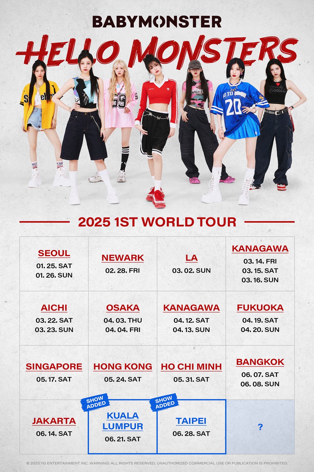 그룹베이비몬스터가아시아에서의공연일정을거듭확대해주목된다.iMBC연예뉴스사진20일YG엔터테인먼트에따르면베이비몬스터는오는6월21일쿠알라룸푸르,6월28일타이베이에서'2025BABYMONSTER1stWORLDTOUR'HELLOMONSTERS'INASIA'를연다.각각1회씩진행,이로써이들은첫번째월드투어에서총14개도시,23회차공연을개최하게됐다.데뷔1년도채되지않은신인임에도음악팬들의성원에힘입어첫월드투어의규모를계속해서확대해나가고있는것이다.차세대글로벌주자로서가파른상승가도를달리고있는이들의인기를실감케하는지점이다.앞서베이비몬스터는오는25·26일서울KSPODOME에서의공연을시작으로미국·일본·싱가포르·홍콩·호찌민·방콕·자카르타로향하는일정을확정했었다.가급적많은지역의관객들과호흡하겠다는YG의약속에따라추가도시발표도예정된만큼글로벌팬들의관심이쏠린다.분위기는이미충분히예열됐다.베이비몬스터는최근SBS'가요대전'을비롯다양한콘텐츠서압도적인라이브실력을각인하며현재까지도뜨거운화제성을모으고있는바.이에이들이데뷔첫월드투어를통해보여줄무대에대한관객들의기대감이더욱커지고있다.한편베이비몬스터가지난해발매한첫정규앨범[DRIP]은국내음원차트서연일곡최고순위를경신하며역주행인기를자랑중이다.더블타이틀곡'DRIP''CLIKCLAK'과수록곡'LoveInMyHeart''ReallyLikeYou'네편의뮤직비디오역시좋은반응을얻고있는가운데,'BILLIONAIRE'콘텐츠또한예고된만큼인기몰이는계속될전망이다.iMBC연예유정민|사진출처YGCopyright©MBC연예.무단전재및재배포,AI학습금지.