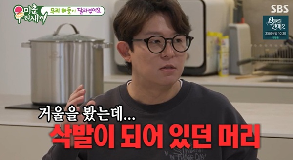 미우새토니안/사진=SBS방송캡처[스포츠투데이임시령기자]'미운우리새끼'토니안이정신적으로아팠던나날을회상했다.23일방송된SBS예능프로그램'미운우리새끼'에서는가수토니안이속내를털어놓는모습이그려졌다.이날토니안은"우리집이화목하지않았다.6살때이혼했다.아버지와계속살았었는데어머님이네분계시다"라고가정사를털어놨다.이어"어머니가바뀌는환경에서있다보니까결혼이두려웠던것같다.혹시나도결혼을하면아버지처럼살게되는건아닐까란생각이들었다.아버지가술을많이드셨는데거칠어지시는게있다"고얘기했다.미우새토니안/사진=SBS방송캡처우울증도있었다는토니안은"혼자(솔로를)하게됐을때힘들었다.엔터회사도운영하고교복사업도너무잘됐다.물질적으로는최고의생활이었는데,마음과정신이아팠던것"이라고말했다.그러면서"어느순간부터나의힘든얘기를못하게돼친구들을안보게됐다.너무친했던매니저와도대표와직원관계가되니까사이가조금씩어색해졌다"며"다이루고보니까사람이없더라.그때부터혼술을하게됐다"고밝혔다.두통약을하루에8알씩먹어도좋아지지않았다고.토니안은"병원에가니까조울증,우울증,대인기피증등진단을받았다"라고정신적으로아팠음을고백했다.토니안은"어느날약과술을같이먹었다.자고일어났는데베개가되게축축하더라.베개를봤는데피가다묻어있었다.거울을봤는데머리가다밀렸더라.거실에보니까머리카락이흐트러져있었다.제가가위로잘랐던거다.그러다가귀를잘못잘라출혈이난것"이라고해충격을안겼다.또한"경비실에서전화가왔는데머리로엘리베이터거울을다깼다더라.그래서더머리에서도출혈이났다"며"한순간에죽을수도있구나를알게됐다.그날부터절대술과약을같이먹지않는다.스스로를억제해야겠다결심했다"고밝혔다.[스포츠투데이임시령기자[email protected]]Copyright©스포츠투데이.무단전재및재배포금지.