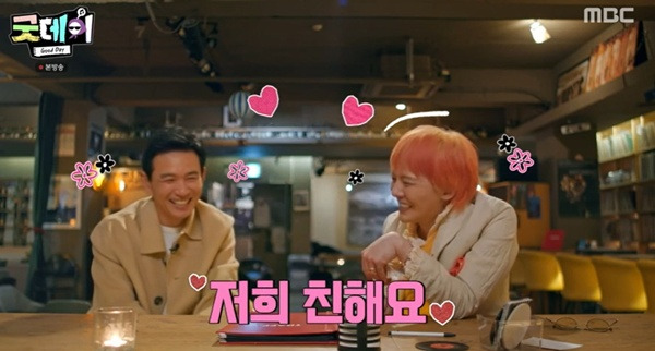 티브이데일리포토[티브이데일리김지현기자]]'굿데이'지드래곤이프로젝트에함께하고싶은아티스트로에스파,세븐틴,플레이브를꼽았다.지드래곤은23일방송된MBC예능프로그램'굿데이'에서준비중인프로젝트에대해이야기했다.지드래곤은"한해를돌아봤을때관심과화제의중심이되는인물이면좋겠다.기본적으로저희멤버들이있을거다.작년대상을받았던에스파,세븐틴"이라고말했다.이어"장르로보면데이식스,플레이브에대해들었는데제가잘이해를못해서.가상인것을알게됐을때한공간에있다는상황이재밌긴할것같다"고얘기했다.지드래곤은"필요하다면연주자나피아니스트이혁과파리공연때같이간다.나중에라이브공연까지생각한다면메인연주자가있음도움이많이될것같다"고덧붙였다.또지드래곤은프로젝트구상안에대해"세대를아우를수있는노래혹은제가생각하고전달하려고하는메시지를고민중이다.제가모르는게있을것같긴한데"라고말했다.한편이날게스트로는배우황정민이등장했다.두사람은예상외로개인적인친분이있었다.지드래곤은황정민에대해"롤모델처럼여러가지자극을주는분"이라고소개했다.황정민은"7년만에나오니까팬들되게좋아하겠다"라며자신도지드래곤의컴백을기다렸다고말했다.이에지드래곤은"다좋아해주시는데,옛날에는'오빠'였으면'고마워지용아.네가행복했으면좋겠어'라더라"고하자황정민은"진짜아끼는것같다.조금이라도활동해주는게얼마나감사하냐"고공감했다.또황정민은"지드래곤의MAMA공연을봤다"며"당신(지드래곤)이나오니요즘유명한활동하는친구들이다일어나서흥분하는게방송모니터로다느껴진다.내가되레흥분되더라"고회상했다.한편‘굿데이’는지드래곤이다양한분야의인물들과함께올해의노래를완성하는음악프로젝트다.[티브이데일리김지현기자[email protected]][Copyrightⓒ*세계속에新한류를*연예전문온라인미디어티브이데일리(www.tvdaily.co.kr)/무단전재및재배포금지]Copyright©티브이데일리.무단전재및재배포금지.