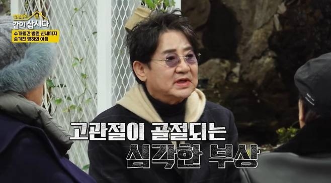 배우이영하[헤럴드경제=이명수기자]배우이영하가추락사고당했을때를떠올렸다.이영하는27일방송된KBS2TV‘박원숙의같이삽시다’에서“고관절에인공관절을넣었다”며“수술후몇개월을움직이지못했다.오랫동안병원신세를졌다.여행을가면공항검색대를통과할때(인공관절이라)소리가울려퍼진다.창피하다”고밝혔다.2014년뮤지컬‘샤먼아이’리허설중무대장치실수로고관절골절부상을입었다.이영하는1981년선우은숙과결혼,2007년이혼했다.슬하에아들둘을뒀다.첫째아들이상원은배우출신이며,인플루언서최선정과결혼했다.이영하는“‘많이웃자’는게내삶의모토인데,며느리가정말잘웃는다.업어주고싶을정도로잘웃고긍정적이다.화내는걸한번도본적이없다”며“솔직히서운할때도있다.맛있는거먹을때나한테‘전화나해보지’라는생각도든다.돌이켜보면‘나도부모님한테그러지않았구나’싶더라.자신을되돌아보게된다”고털어놨다.“그래도나름할아버지로서잘한다.(손주를만나기위해)직접아들집을방문한다”며“처음에는‘할비’하다가지금은‘할아버지’한다.손주들과노는게재미있다”며“아이들이에너지가넘친다.손주들에게뿅망치라도맞으면리액션을해줘야한다.골병들고온다”고했다.Copyright©헤럴드경제.무단전재및재배포금지.