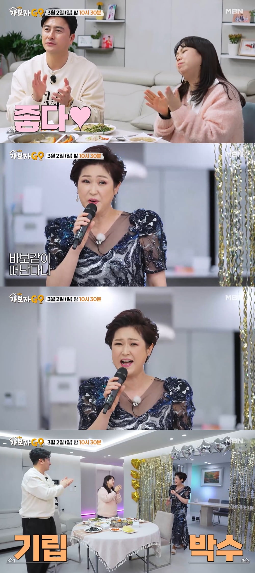 사진=MBN'가보자GO4'[스포츠한국신영선기자]트로트가수김용임의강남논현동80평대초호화빌라가방송최초로공개된다.오는3월2일방송되는MBN'가보자GO4'4회에서는김용임이MC안정환,홍현희를위해히트곡'나이야가라'를열창하며특별한디너쇼를펼친다.김용임은이번방송에서처음으로자신의집을공개한다.방5개,냉장고5개가구비된넓고화려한80평대빌라는MC들의감탄을자아냈다.김용임은두사람을위해'프라이빗스페셜디너쇼'를마련해,'논현동이효리'다운화려한의상과메이크업은물론와인과응원봉까지완벽하게준비해놀라움을안겼다.사진=MBN'가보자GO4'이어김용임은특유의시원한가창력과화려한꺾기신공으로히트곡을열창했고,안정환과홍현희는흥넘치는응원으로분위기를한껏끌어올렸다.또한,이번디너쇼에는특별한핫게스트도등장할예정이어서기대감을더욱높이고있다.한편,'가보자GO4'는스타들이직접초대장을보내MC안정환과홍현희가그들의집을방문해인생이야기를나누는전국민집들이투어프로그램이다.'가보자GO4'4회는오는3월2일밤10시30분방송된다.스포츠한국신영선기자[email protected]©스포츠한국.무단전재및재배포금지.