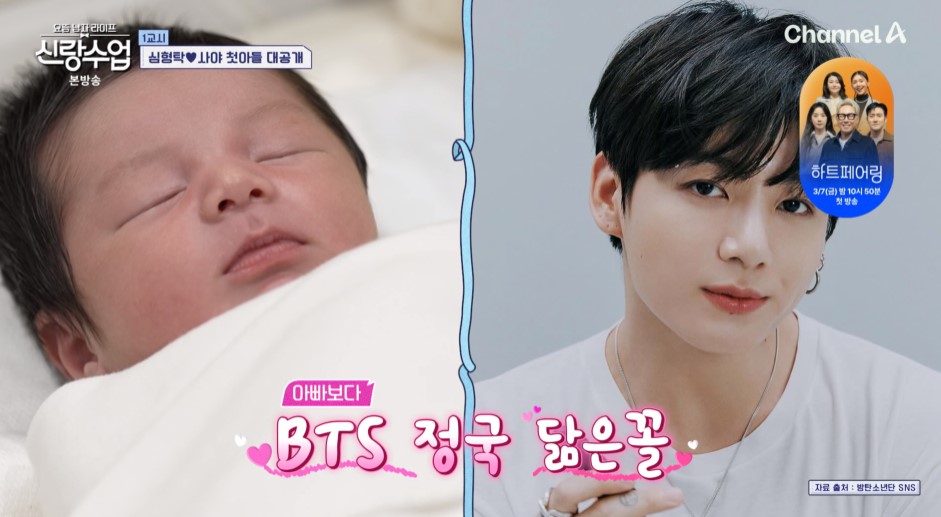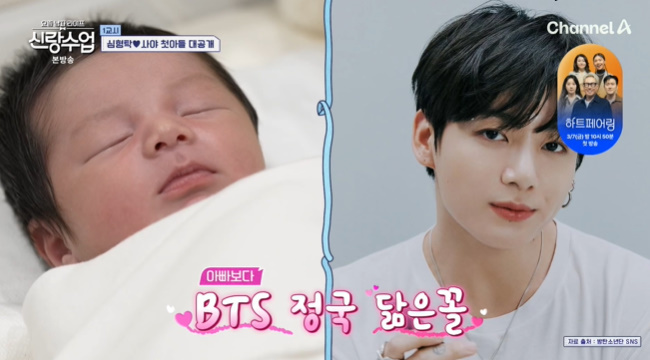 (엑스포츠뉴스장인영기자)'신랑수업'심형탁사야부부의아들하루가벌써부터완성형비주얼을드러냈다.26일방송된채널A'요즘남자라이프-신랑수업'(이하'신랑수업')에서는육아에'올인'하는심형탁의모습이공개됐다.이날'아들아빠'가돼돌아온심형탁에모두가"하루아빠"라며반가움을드러냈다.심형탁은"(하루가)12시간진통후나왔다.간호사가'산모분너무대단하시다'라고하더라.고통신음도삼켰다고하더라"라고이야기했다.이승철이"분만실들어갔을때하루가먼저보였냐,사야가먼저보였냐"고묻자,심형탁은앞서배운대로(?)"무조건사야"라고답해웃음을안겼다.심형탁사야부부의산후조리원퇴원날이밝았고,아들하루는긴속눈썹과숨길수없는잘생김을뽐내눈길을끌었다.스튜디오의패널들은"그림같다","너무예쁘다"고감탄했고,심진화는"아빠보다BTS정국씨닮았다"고말했다.심형탁은"거짓말안하고눈썹이사야다"라며엄마아빠의좋은점만빼닮은붕어빵아들을흐뭇해했다.사진=채널A방송화면장인영기자[email protected]©엑스포츠뉴스.무단전재및재배포금지.