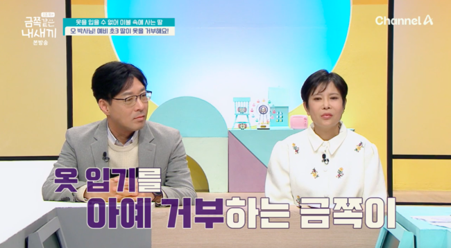 [OSEN=박하영기자]‘금쪽같은내새끼’옷입기거부하는금쪽이의사연이공개됐다.21일방송된채널A'요즘육아-금쪽같은내새끼'에서는속옷조차거부하는예비초3금쪽이의사연이공개됐다.이날스튜디오에는늦둥이예비초3딸을둔부부가등장했다.42살에딸을낳았다는엄마는“옷을못입는다.입혀줘도못입는다.바지를포함해서옷자체가불편하다고해서양말도거부한다”라고고민을토로했다.이어진영상에는옷입히려는엄마를향해금쪽이가“하지마라고.엄마나살려줘”,“이거바지못입어절대못입어.너무갑갑해”라고울부짖으며거부하는모습이공개됐다.예쁜옷차려입던어린시절엔괜찮을까?엄마는“그나마좋지않았는데몸이예민해서”라며“좀괜찮았다가최근4~5개월전부터극도로옷입기를거부한다.청바지는한번도입은적이없다.양말도끝에솔기있는것도못신는다.지금도양말안신고있다”라고밝혔다.심지어옷을안입어서금쪽이는초등학교유급당할수있다고덧붙여놀라움을안겼다./mint1023/@osen.co.kr[사진]‘요즘육아-금쪽같은내새끼’방송화면캡처Copyright©OSEN.무단전재및재배포금지.