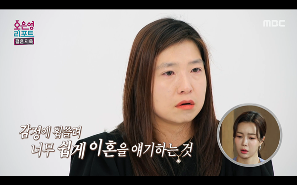 사진=MBC'오은영리포트–결혼지옥'[스포츠한국신영선기자]이별과만남을반복하는'돌돌이부부'의사연이공개됐다.3일방송된MBC'오은영리포트–결혼지옥'에는결혼8년차유영훈,이수영부부가출연했다.두사람은사내커플로만나8년만난뒤결혼에골인했다.두사람은3,4개월전에는이혼서류에사인도했었다고고백했다.남편은"이혼하면마음이편할것같았어"라며"자기는자기살길알아서찾아야지"라며무책임한발언을했다.이에아내는"그런부분이상처로남는다"라며울먹였다.남편은아내에대한마음이떠나버린듯"이사람의말투,억양,표정그것만봐도화가치밀어오른다.이생활을그만했으면좋겠다"라고토로했다.사진=MBC'오은영리포트–결혼지옥'남편은"헤어지고만나는걸20번가까이반복했다.8년이아닌한달에20번"이라고말해모두를놀라게했다.그는"아침에헤어지고저녁에화해했다가다음날다시헤어지고이런식을반복했다"고말했다.이어두사람의일상을담은VCR이공개돼호기심을자극했다.스포츠한국신영선기자[email protected]©스포츠한국.무단전재및재배포금지.