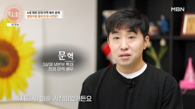 MBN‘특종세상’캡처MBN‘특종세상’캡처[뉴스엔서유나기자]배우문혁이불우한가정사를고백했다.1월16일방송된MBN밀착다큐멘터리'특종세상'670회에서는배우문혁이힘들었던유년시절을털어놓았다.이날문혁은"이혼가정이었다.어머니혼자서저랑이제막아기인제동생을키우던시기였다.집도없어서여인숙에서몇개월산적이있었다"고본인의유년시절을전했다.그는"아무것도없었던그시대에그상황에그리고그때당시에이혼가정에대한편견,시선.그모든것을견디며사셨다.그젊었던스물네살에.그게가슴아플때가있다"며평생두아들을위해헌신한어머니에대한애틋함을드러냈다.홀로고생하는어머니를보면서가족을떠난아버지를많이원망하기도했다는문혁은"남편이라는사람이잘못하면얼마나많은피해가오는지많이느낌가족이다보니까'난친부처럼되지말아야지'라는게꿈이됐다.'난결혼하면진짜(좋은아빠가되어야지)'가"라고밝혔다.하지만마흔중반의나이에도아직미혼인문혁은일본에계신어머니가화상통화를통해결혼잔소리를하자죄책감가득한표정을지우지못했다.뉴스엔서유나stranger77@기사제보및보도자료[email protected]ⓒ뉴스엔.무단전재&재배포금지Copyright©뉴스엔.무단전재및재배포금지.
