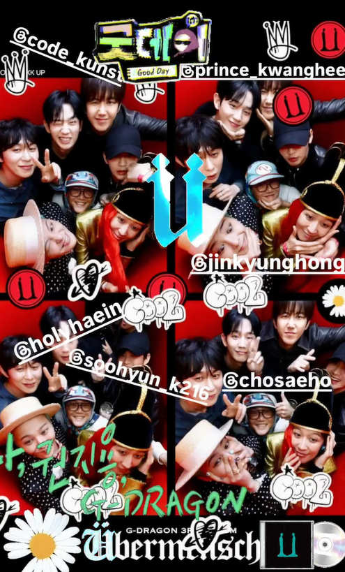 지드래곤인생네컷.SNS캡처지드래곤이‘굿데이’로인연이닿은출연진들과인생네컷을찍으며친분을과시했다.지드래곤은26일자신의SNS계정에코드쿤스트,황광희,홍진경,조세호,정해인,김수현과함께찍은인생네컷사진을공개했다.‘무한도전’에서합을맞췄던조세호와황광희를제외하면모두지드래곤이‘굿데이’를통해인연을갖게된이들이다.‘굿데이’는지드래곤이프로듀서로나서배우와방송인,셰프등각계인물들과함께올해의노래를완성하는과정을담은예능으로매주일요일오후9시10분MBC에서방영된다.방송첫날시청률이4.3%였지만,그다음주3.6%로0.7%하락한시청률을기록해방송2주차에벌써위기가닥친건아니냐는주장이제기되기도했다.서형우온라인기자[email protected]©스포츠경향.무단전재및재배포금지.