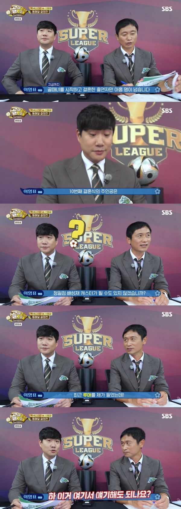 사진=SBS[스포츠투데이김태형기자]배성재아나운서가결혼을발표한가운데,전축구국가대표이영표의과거발언이화제를모았다.지난해9월18일방송된SBS'골때리는그녀들'에는'제5회슈퍼리그'동메달결정전FC액셔니스타와FC스트리밍파이터의대결이펼쳐졌다.이날배성재는코미디언김승혜와김해준의결혼소식을전했다.함께진행을맡은이영표는"오나미,아유미,안혜경등'골때녀'에출연하면서결혼한선수가9명이넘는다"며"10번째결혼소식은배성재아나운서가되기를바란다"고말했다.이어"최근루머를들은게있는데여기서말해도되냐"고물어배성재를긴장시켰다.배성재는당황하며"나는루머가없는사람이다.무슨루머를말하는거냐"고해이영표의웃음을자아냈다.당시이영표의발언이재조명된가운데,오늘(7일)배성재가김다영SBS아나운서와'골때리는그녀들'을통해연인으로발전하고최근결혼을약속했다는소식이전해졌다.배성재소속사SMC&C는"배성재아나운서가김다영SBS아나운서와오는5월부부의연을맺게됐다"고밝혔다.소속사는"두사람은2년간의교제끝에,최근서로의동반자가될것을약속했다"며"두사람은모든형식을생략하고조용히출발하기원하여,가족들의식사자리를가지는것으로예식을대신하고자한다"고전했다.또한"결혼과관련된이외사항들은두사람의사생활인만큼구체적으로말씀드릴수없는점너그러이양해부탁드린다"고덧붙였다.이영표가말한'10번째결혼소식'의주인공은FC구척장신의모델아이린에게넘어갔지만,배성재는'골때리는그녀들'이배출한첫신랑이자,11번째결혼소식의주인공이됐다.[스포츠투데이김태형기자[email protected]]Copyright©스포츠투데이.무단전재및재배포금지.