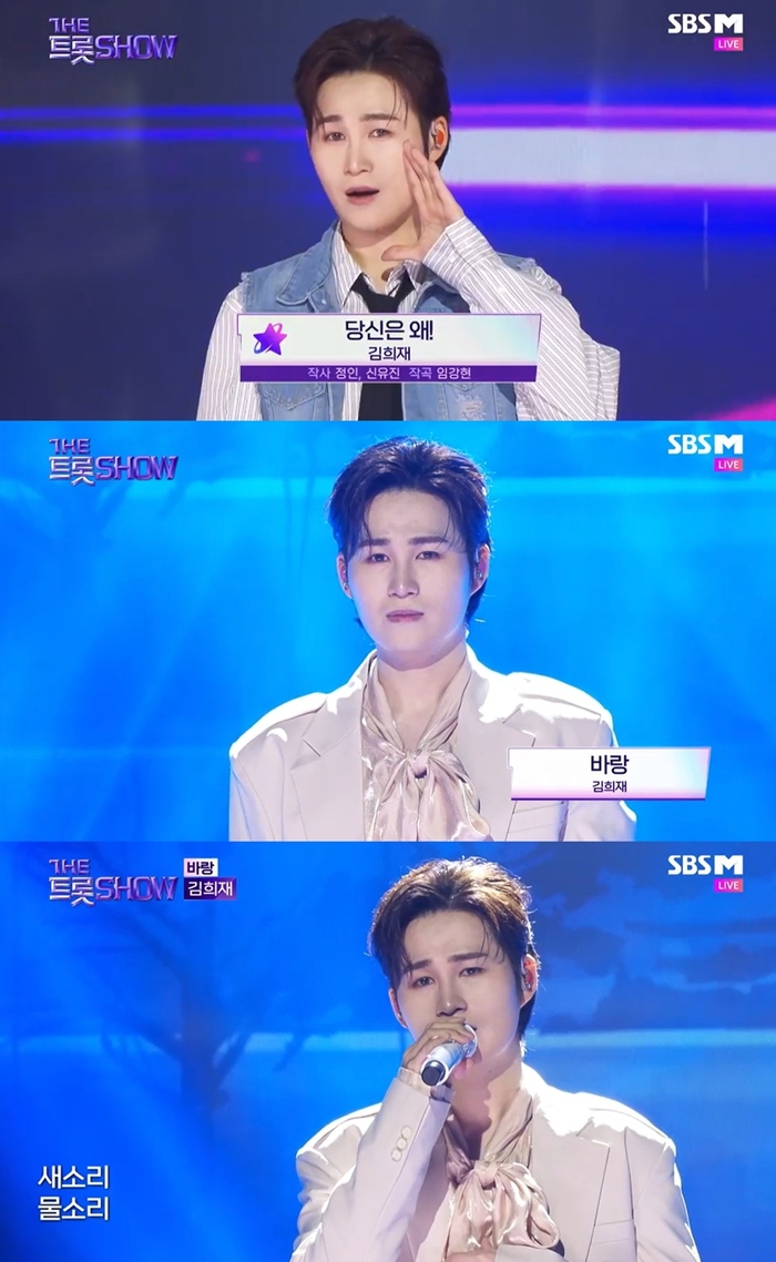 SBSM,SBSFiL‘더트롯쇼’캡처가수김희재가‘더트롯쇼’분위기를제대로책임졌다.24일오후‘더트롯쇼’가방송된가운데,이날김희재는애절함과흥을넘나들며시청자들의이목을단번에집중시켰다.김희재는‘바랑’무대를선보였다.김희재는앞서라디오를통해‘바랑’녹음당시눈물을흘렸다고밝혔던만큼,이번무대에서애절한감정을폭발시키며보는이들의눈물샘을자극했다.이어‘당신은왜’로무대를꾸민김희재는치명적인매력을방출하기도했다.넘치는흥과끼로현장분위기를끌어올리는가하면,역동적인퍼포먼스에도흔들리지않는라이브와함께팬들을유혹하는표정들까지선보였다.김희재가선보인‘바랑’과‘당신은왜’는정규2집‘희로애락(喜怒哀樂)’에수록된곡이다.‘희로애락(喜怒哀樂)’은김희재가다양한장르를총망라해한계없는음악적스펙트럼을증명한앨범이다.김희재는음악,뮤지컬,MC등다방면에서활약을펼치고있다.팔방미남의진수를선보이고있는김희재가앞으로는어떤활약을더보여줄지기대를모은다.손봉석기자[email protected]©스포츠경향.무단전재및재배포금지.