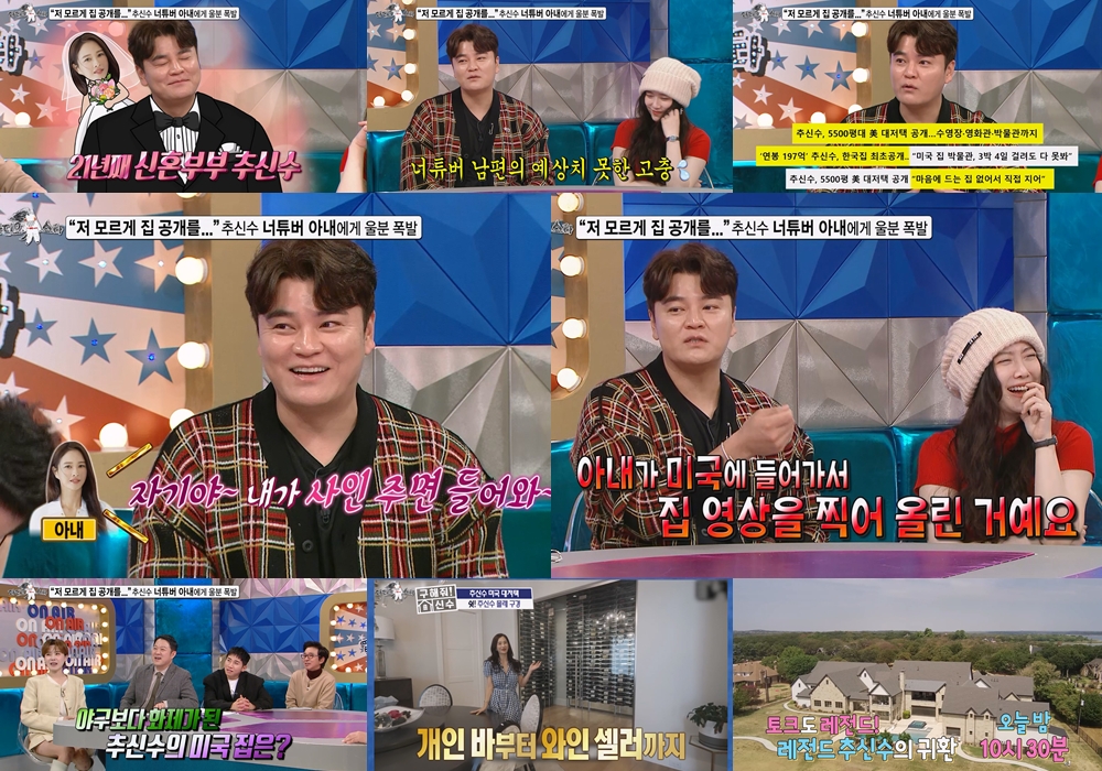 MBC'라디오스타'15일방송MBC(서울=뉴스1)장아름기자=야구선수추신수가망언으로'라디오스타MC김국진도버럭하게만든다.15일방송되는MBC'라디오스타'는추신수,구혜선,곽시양,윤남노가출연하는'내2막맑음'특집으로꾸며진다.방송에앞서올라온선공개영상에는21년째신혼부부같은애틋한부부애를보여준추신수가아내하원미의유튜브사랑에위기를겪고있다고고백하는모습이담겨이목을집중시켰다.추신수는"최근유튜브를시작한아내가집에서설정같은걸시킨다"며한숨을쉬면서도"내가도와줄수있는건이거밖에없지"라는생각에야구선수를은퇴한뒤에서집에서아내의사인을받는사연을전해웃음을자아냈다.특히추신수는야구가아닌미국집에관한기사가쏟아져당황했던사연도공개했는데,알고보니아내가유튜브에미국집소개영상을찍어올렸던것.약80만조회수를기록하며크게화제가됐던'추신수없는추신수집'소개영상과함께이에대한비하인드도본방송에서공개된다.개인바부터영화관,수영장,농구장,헬스장등리조트를방불케하는대저택의스케일에모두가놀란가운데,김구라는"이걸얘기안하고찍은거예요?"라고질문을던졌다.이에추신수는"여보,나콘텐츠좀딸게"라며당시아내에게들은말을따라했다고.또한김구라가아내가유튜브를하게된이유에대해묻자,추신수는"제가이제수입이없다보니까"라고대답에스튜디오를발칵뒤집어놨다.그러자김국진은"저게수입이없는집이에요?"라고버럭해폭소를자아냈다.'라디오스타'는이날오후10시30분방송된다[email protected]©뉴스1.Allrightsreserved.무단전재및재배포,AI학습이용금지.