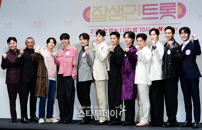 추성훈(왼쪽부터),태항호,장혁,현우,최대철,김동호,인교진,이태리,지승현,김준호,정겨운,한정완.사진|강영국기자모두가주인공인,트로트에진심을담은‘잘생긴트롯’이출격한다.4일오후라마다서울신도림호텔에서tvNSTORY‘잘생긴트롯’제작발표회가열렸다.황다원PD,MC장민호이찬원,출연진추성훈장혁최대철인교진지승현정겨운태항호현우김동호이태리김준호한정완이참석했다.‘잘생긴트롯’은연예계대표12명의남자스타들이트로트에진정성을가지고도전하는신(新)음악예능이다.예능까지접수한트로트가수장민호와이찬원이멘토겸프로듀서로합류했다.황다원PD는“‘잘생긴트롯’은트로트도전기다.톱4를뽑아서트로트음원을낼수있는기회를드린다.유명작곡가에게음원을받아서개인곡을내게될것”이라고밝혔다.이어차별점을묻자“저희프로그램만의특색은대형프로그램을한다는게차별성을가진다.모든분이주인공이고왜트로트를좋아하고부르는지진정성을담았다.장민호이찬원이MC로뭉친첫프로그램이다.두분의프로듀싱을볼수있다는게차별성”이라고말했다.또캐스팅에대해“이렇게잘될지몰랐다.하고보니뿌듯하다.섭외기준1순위는트로트하고진심으로하고싶은지였다.그리고여기한분한분다진심이더라.김준호는제작진이꾸려지기전에하고싶다고바로다음날오전에미팅하러왔다”며“장민호이찬원은매일한시간씩통화할정도로친하다고하더라.장민호가한다고하자이찬원도바로하겠다고해서기획안을드렸다”고비하인드스토리를살짝공개했다.장민호는“저희가MC를같이하는건이번이처음이다.이찬원과프로그램을많이했다.감독님말씀처럼섭외왔을때정확한툴이정해지지않은상황에서김준호만정해졌을때배우들과함께한다고해서전화로회의를거듭하다가결정을내리고나서MC한명을이찬원생각한다고하더라.그래서바로이런프로그램이있는데어떻게생각하냐고했더니이찬원이바로형이랑하면하겠다고하더라”고설명했다.또장민호는“이친구와는워낙프로그램을많이해서12명과함께경연을하는느낌이다.저희도노래로대결해본사람이라MC는이름만붙인느낌이고함께경연하는느낌이다.‘잘생긴트롯’은확실히다르다.이들이변해가는과정을봐달라.의상애티튜드등을변하는모습을보면흡족해할것”이라고이야기했다.‘잘생긴트롯’포스터.사진|tvNSTORY출연진라인업도화려하다.레전드격투기스타추성훈부터데뷔28년만에첫트로트에도전하는배우장혁,드라마와영화뿐만아니라뮤지컬무대에서도활약중인배우최대철,아버지의뒤를이어트로트에도전하는인교진,실감나는빌런연기로화제를모았던지승현,반전매력가득한배우정겨운,‘항블리’라는애칭과함께신스틸러로활약중인태항호,동안꽃미남배우현우,뮤지컬배우로활약중인김동호,‘순풍산부인과’아역정배역할로친근한배우이태리,트로트에대한사랑도금메달급인‘전국가대표펜싱선수’김준호,한국최고미남선발대회우승자한정완까지개성가득한스타들이함께한다.이찬원은기대되는출연자를묻자“단기간에드라마틱하게성장하는게쉽지않다.여기12명이드라마를쓰고있고어마어마한성장속도를보여준다.원래잘한다고유명한분이더잘하고있다”며“최대철은‘불후의명곡’에서배우출신으로우승까지했는데트로트까지”라며감탄을표했다.최대철은즉석에서트로트한소설을부르며노래실력을뽐내박수를받았다.김준호는“제가첫번째로미팅했다.트로트좋아하는마음이커서개인적으로음반을내고싶다는찰나에이런좋은프로그램에섭외돼서바로갔다”며“주변에서도‘네가트로트를한다?’고물었는데,경기전에도트로트를많이들었다.펜싱이미지때문에트로트와거리가멀다고생각하더라.그런데트로트가저에게경기하고훈련할때많은힘이됐다.그래서이자리에있게된것”이라고진심을강조했다.과거래퍼TJ로활동했던장혁은“색다른트로트프로그램이될것”이라며“처음엔제가트토르틀섣부르게했다는생각이있었다.연습을하면할수록감정을밀도있게하는것이쉽지않았다.제가뭘가지고나만의색깔을가질수있을까.배우를하면서캐릭터의감정을표현하는것에대해알게됐다.가사전달을저만의해석으로표현하는것을고군분투하고있다.장르의영역이TJ와다르기때문에이미지가깨지긴쉽지않을것”이라고말했다.헬로비너스윤조와결혼한김동호는“와이프가아이돌출신이다.처음에는제가트로트를하는게잘그려지지않는다고하더라.‘잘생긴트롯’을하면서직접무대매너와꿀팁을많이전수받았다.든든한내조를받고있다.내조로멋진무대만들었다”며고마운마음을전했다.최대철은“열심히촬영했으니예뻐해주고사랑해달라”고했고,인교진은“‘잘생긴트롯’을통해절찾아가고있다”고밝혔다.지승현은“이런자리가낯선데많은관심주셔서감사하다.여기있는분들이독특한색깔을보여줄것”이라고자신했고,한정완은“첫제작발표회라긴장되는데모두한마음한뜻으로즐겁게촬영했다”며관심을당부했다.이태리는“만년‘순풍산부인과’정배인ㅇ태리다.트로트인기에업어가려는게아닌진심으로임하고있다”고말했다.태항호역시“관심에부흥하도록열심히했다”고밝혔고,정겨