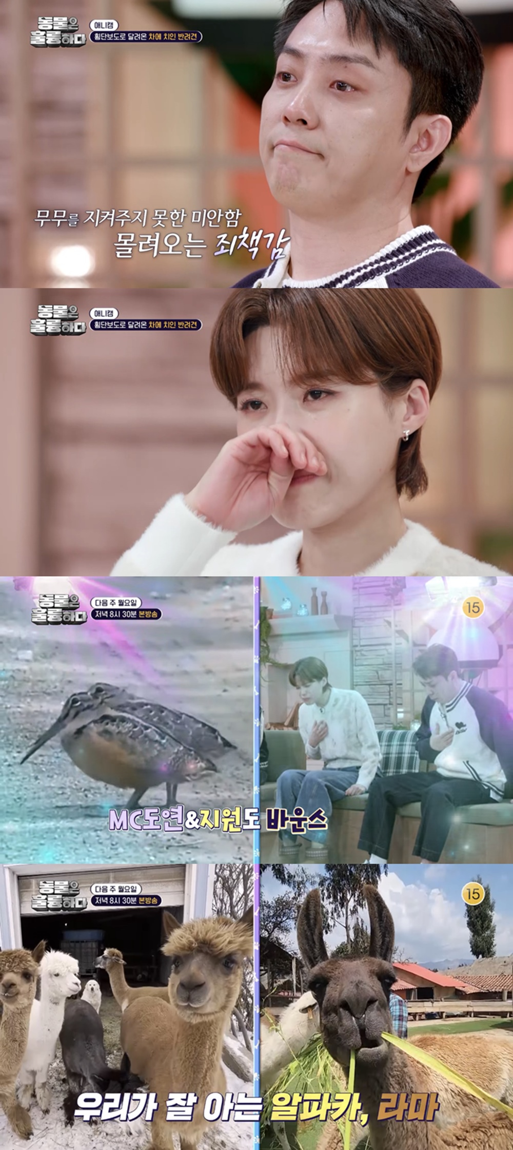 [스타뉴스|이승훈기자]/사진=KBS'동물은훌륭하다'가익숙하지만새로운동물들의매력으로시청자들을사로잡는다.3일오후8시30분방송되는KBS2TV예능'동물은훌륭하다'11회에는멧도요새가등장해시청자들의시선을사로잡는다.멧도요새는심상치않은움직임으로MC들의주목을받았고.은지원과장도연은"완전칼군무다"라며멧도요새의몸짓을따라해웃음을안길전망이다.'글로벌애니캠'코너에는베트남에존재하는공룡의후예도등장한다.장화를신은듯왕발이특징인드래곤치킨에MC들은"진짜닭이에요?","아니이게뭐야"라며영상을보고도믿지못하는모습으로시청자들의공감을살예정이다.페루의국보비쿠냐와사람들의많은사랑을받고있는알파카,라마의모습도확인해볼수있을전망이다.페루국기에도있는동물인비쿠냐는멸종위기보호종으로지정돼사육이불가하고오직야생에만존재한다.이에장도연은"한번만나기쉽지않다"라고말해웃음을안겼고,은지원은"이름도처음들어본다"라며놀라움을감추지못한다.스튜디오의분노를부른반려견'무무'의안타까운사연에대해서도알아본다.데프콘은"신호등에사람이많았으면큰일날뻔했다.대형사고다"라며말을잇지못했고,은지원과장도연은속상한마음에눈물을보이는등시청자들의분노와공감을이끌어낼예정이다.'동물은훌륭하다'는다양한반려동물과반려인의일상을보여주는프로그램으로,애니캠을통해감동과재미,일상속법률상식까지반려문화를선도하고대중의인식을개선하는데힘쓰고있다.유일무이무공해동물전문프로그램KBS2TV'동물은훌륭하다'11회는3일오후8시30분방송된다.이승훈기자[email protected]©스타뉴스&starnewskorea.com,무단전재및재배포금지