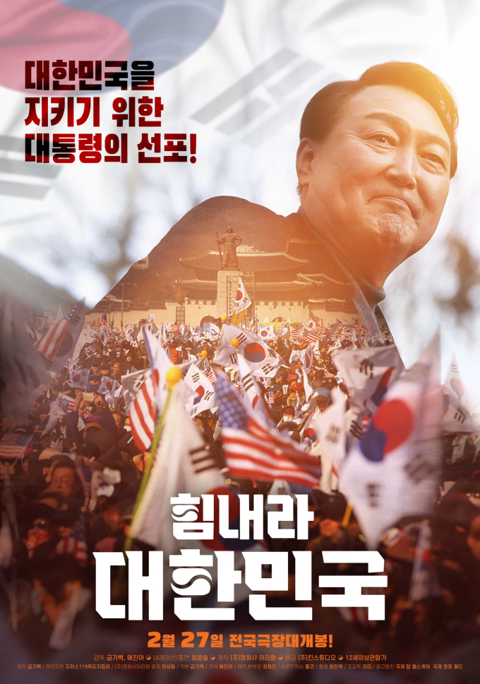 사진제공:아리랑KOBIS에따르면영화‘힘내라대한민국’의누적관객수가3만을돌파(오늘기준)하며국내박스오피스5위에올랐다.지난2월27일개봉한다큐멘터리영화‘힘내라대한민국’은윤석열대통령의12·3비상계엄선포와탄핵반대여론을다루고있다.‘힘내라대한민국’의영화사아리랑은“민주당입법독재로나라가흔들리는상황에서대한민국을지켜내기위해막중한선택을한대통령의계엄선포를그린역사다큐멘터리”라고밝혔다.한편관객들의평은엇갈리고있다.일부관객들은“눈물이났다.이제온국민이계몽할때다”라는평을내놓는반면일부는“급하게만든티가너무나는영화”라고혹평하고있다.이현승기자bnt뉴스연예팀기사제보[email protected]©bnt뉴스.무단전재,재배포및AI데이터활용금지