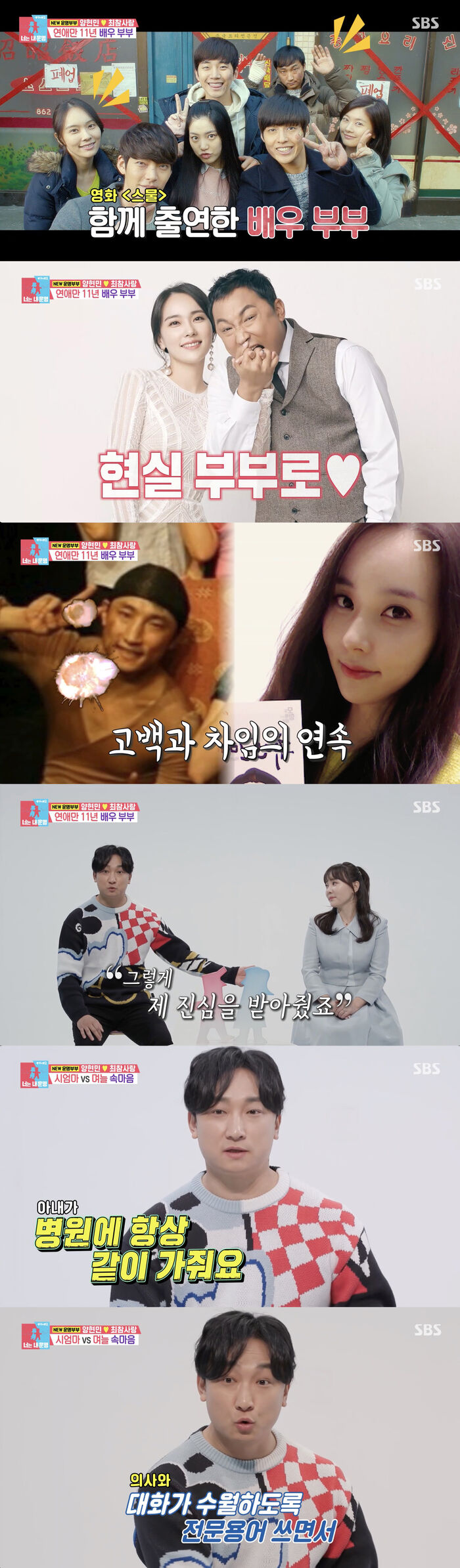 [SBS연예뉴스|김효정에디터]양현민최참사랑의러브스토리가공개됐다.3일방송된SBS'동상이몽시즌2-너는내운명'(이하'동상이몽2')에서는명품조연배우양현민이아내최참사랑과함께새로운운명커플로합류했다.이날방송에서양현민은최참사랑과처음만났던당시를떠올렸다.그는"예전에같이공연을했던배우가지인과공연보러온다고공연티켓준비해달라고했다.그래서티켓을준비해줬는데그때같이온지인이지금의아내다.처음봤는데너무예뻐서반했다"라고설명했다.이에최참사랑은"그러고나서6개월을따라다녔다"라며양현민과인연이시작된순간을이야기했다.양현민은"내여자가되어줄수있냐니까안된다더라.왜그러냐니까한방이없는거같다고했다.그한방이뭘까고민했는데나중에알고보니자기를움직이는진심의한방이없었다고했다"라며쉽지않았던연애에대해설명했다.이를들은최참사랑은"낮엔연락을잘하고저녁에꼭모임이나술자리를가면연락을안했다.그래서진심같이안느껴졌다.그래서좀더봐야지했는데나중에저한테화를내더라"라고덧붙였다.이에양현민은"거절을했는데만나주긴하더라.그러면서고백은안받아주고.그렇게한6,7번을찼다.그러니까화가나잖냐.그래서마지막에는포기할생각으로화를냈다.만나주질말던지왜사람을헷갈리게하냐고.사귈거면사귀고아님이게마지막이라고했다"라며마지막일수도있던때를떠올렸다.결국최참사랑은"참멋없게프러포즈한다"라며양현민의구애를받아줬다고.이에최참사랑은"사실대학로에서공연을봤을때남편이연기를너무잘했다.이렇게연기잘하는배우가있었구나싶어서반했다"라며처음부터그에게호감을가졌음을고백했다.그렇게두사람은연애만11년을하고결혼에골인했다고.최참사랑은남편의프러포즈에대해서도이야기했다.그는"프러포즈에대해바라는게많지않다고했다.반지랑둘만의공간에서.그리고이게영상으로남아서두고두고돌려볼수있으면좋겠다고했다.그세가지를부탁했는데강원도로여행갔던날투게더같은아이스크림에편의점양초를꽂아서반지랑함께왔더라.그러고는자기가휴대폰을들면서프러포즈를하는데최악의프러포즈였다"라고충격적인그때를떠올렸다.이에양현민은"그래도아내가울긴울었다"라고했고,최참사랑은"너무최악이라서울었다"라며눈물의의미를밝혀웃음을자아냈다.이날방송에서는시어머니와살가운최참사랑의모습도공개했다.이에양현민은"부모님이아프실때마다병원을항상같이가준다.병원갈때도그냥가는게아니라아프신거에대해서공부를해서의사와대화가가능할수있도록준비를한다.아들된입장으로너무고맙다"라고아내에게고마운마음을전해눈길을끌었다.Copyright©CopyrightⓒSBS.Allrightsreserved.무단전재,재배포및AI학습이용금지