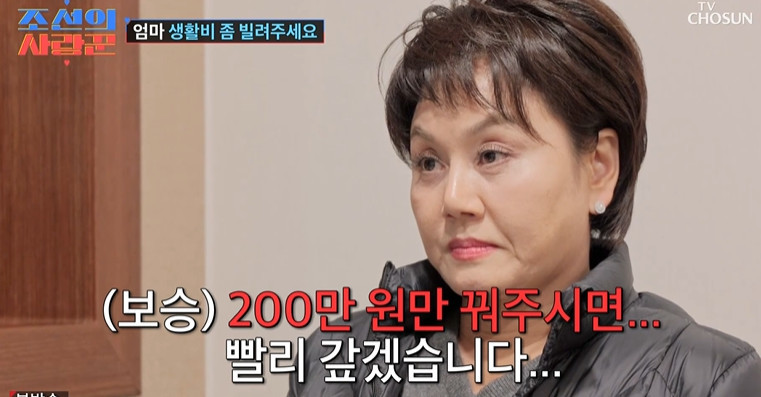 TV조선‘조선의사랑꾼’TV조선‘조선의사랑꾼’TV조선‘조선의사랑꾼’TV조선‘조선의사랑꾼’[뉴스엔하지원기자]이경실이생활비를빌리는아들에게따끔한조언을했다.3월3일방송된TV조선‘조선의사랑꾼’에서는이경실에게생활비를빌려달라고부탁하는아들손보승모습이전파를탔다.손보승은연기활동과대리운전아르바이트를병행하며생계를이어가고있었다.하지만촬영을마친작품들의방영이계속미뤄지면서출연료를온전히받지못한상황이었다.손보승은"미리받은출연료는생활비로다썼다"며심지어OTT작품출연료는가불까지받은상태라고털어놨다.이경실이"아내에게생활비도줘야할텐데"라며걱정하자,손보승은"출연료가들어와도엄마한테빌린돈과카드값을갚느라여유가없었다.금전적으로넉넉했던적이한번도없다"고고백했다.손보승은대리운전이주된수입원이지만육아와병행하다보니큰돈을벌기어려운실정이라며"카드값,관리비,휴대폰요금까지200만원만빌려주면빠르게갚겠다"고난처한심정을전했다.그러자이경실은"그런것도못내?엄마가볼때는너네가이훈이데리고여기저기잘놀러다니더라.그래서엄마는너네가생활이좀되는줄알았다.'쟤가돈벌이가괜찮은가보다'그랬다"며"돈을규모있게썼으면좋겠다.엄마만믿고돈을쓰는건아니라는거다.돈이라는건없으면쓰질말아야한다.없는데도돈많은사람처럼다하면안된다.빌려주는데앞으로는그런식으로하지말라이거다"라며따끔한충고를건넸다.뉴스엔하지원oni1222@기사제보및보도자료[email protected]ⓒ뉴스엔.무단전재&재배포금지Copyright©뉴스엔.무단전재및재배포금지.