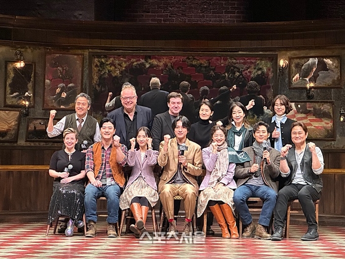 가장더블린스러운배경속서로간의호흡조용하고얌전한韓관객들?“아닌던데!완전적극적”26일뮤지컬‘원스’의프레스콜에참석한국내외스태프들과배우들.사진|표권향기자[email protected][스포츠서울|표권향기자]뮤지컬‘원스’가10년만에무대로돌아왔다.연출·대본·음악과창작진·제작진·배우등각자의자리에서갖춰야할‘3박자’를모두완벽하게장착해프리뷰공연부터기립박수를끌어내고있다.코너핸래티협력연출은26일서울강남구코엑스신한카드아티움에서열린뮤지컬‘원스’프레스콜에서무대가내포하고있는깊이있는메시지에대해설명했다.‘원스’는아일랜드더블린의한소박한술집이배경인원세트무대로진행된다.화려함을과감하게벗어던진한공간에서시작과끝을장식한다.다소밋밋할것이라는우려도예상되지만,걱정은금물이다.매장면감정변화를일으키기때문이다.관객들의감성을자극하는요소중하나가바로거울이다.무대는단순한펍을연상케하지만,정중앙에있는직사각형의대형거울을중심으로다양한크기와모양의거울들이전체무대를감싼다.코너핸래티협력연출은“배우들이서로호흡을맞추며악기를연주하는움직임을거울을통해다각도에서볼수있다.서로보면서호흡을맞추는액터뮤지션간시선의거울로작용한것”이라며“함께음악을만드는집중도를살펴볼수있는통로”라고설명했다.그는“더블린의펍이나아일리쉬펍에는수많은액자와오래된사진·포스터들이걸려있다.그곳의문화적인모습을공연의세트로승화시켰다고생각한다.더블린에온다면술한잔사드리겠다”고말했다.일반적인브로드웨이의틀을과감하게깨고잔잔한아름다운선율속액터뮤지션으로선‘원스’.코너핸래티협력감독은“나자신을좀더다르게깊이들여다볼수있게하는작품이다.살아가면서의용기,남들이나를봐주는또자신을되돌아볼수있게한다”며“나역시작업하면서인식이바뀌었다.거울이이런면을상징적인음악을통해우리의삶이바뀌는것처럼인생을바꿀메시지가되지않을까생각한다”고소개했다.지난19일개막한‘원스’의여정을함께보내고있는코너핸래티협력연출은“한국관객들은조용하고얌전하다고들었는데,직접만나보니들었던것과다르다.본공연전‘원스바’를즐기다가공연의이야기세계로들어가는것을느꼈다.이는절대술을제공해서가아니다.관객들이따뜻한마음과함께적극적으로공연을경험하고있기때문”이라고말했다.브로드웨이쇼뮤지컬특유의색을빼고‘원스’만의공감대를형성하는공연은오는5월31일까지코엑스신한카드아티움에서펼쳐진다.‘가이’역윤형렬·이충주·한승윤,‘걸’역박지연·이예은,‘다’역박지일·이정열등모든배우가직접악기를연주하며노래·연기로무대를장식한다[email protected]©스포츠서울.무단전재및재배포금지.