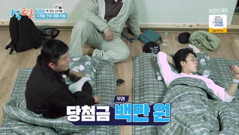 KBS2TV‘1박2일시즌4’캡처KBS2TV‘1박2일시즌4’캡처[뉴스엔김명미기자]이준이과거로또3등에당첨된적있다고밝혔다.2월9일방송된KBS2TV'1박2일시즌4'(이하1박2일)에서는전라북도진안군으로여행을떠난여섯멤버의'복있는녀석들'두번째이야기가공개됐다.이날멤버들은실내취침을놓고복권을긁기시작했다.그결과딘딘과조세호의실내취침이확정됐다.또유선호도게임에승리하면서실내취침대상자가됐다.실내취침이거의처음인조세호는"후드티입으면안되겠다"며따뜻한온도에적응하지못하는모습을보였다.이에딘딘은"이형실내처음"이라며웃었고,조세호는"나는안에서잔적이없다.첫날다같이실내취침했을때빼고는"이라며감격했다.그때김종민문세윤이준등이실외취침을앞두고실내에들어왔고,멤버들은복권에대한대화를나눴다.특히이준은"나는복권3등까지해봤다"며과거100만원의금액을수령했음을자랑했다.이에딘딘은"형은내가보니까운을거기다썼다"고팩트폭력을가했다.뉴스엔김명미mms2@기사제보및보도자료[email protected]ⓒ뉴스엔.무단전재&재배포금지Copyright©뉴스엔.무단전재및재배포금지.