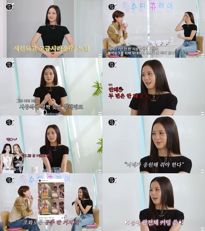 ‘살롱드립2’.사진I유튜브채널‘테오’캡처그룹블랙핑크지수가완전체컴백에대한기대감을높였다.4일유튜브채널‘테오’의‘살롱드립2’에는지수가출연했다.이날지수는“장도연과실제로만난적은없다.내적친밀감만있다.우리를도와줬다”고입을열었다.장도연은지난2018년한시상식에서지각한블랙핑크를위해무대에서시간을끌어화제를모았다.지수는당시상황에대해“우리가준비하다가너무늦어졌다.길도갑자기막히더라.그래서(관계자한테)‘지금괜찮은거냐’라고물으니‘지금괜찮은것같다’고하더라.‘뭐가딜레이됐나’라고생각했다”고말했다.이어“나중에야그영상을봤다.뭔가인사를해야할것같았다.이자리를빌려정말감사했다”며장도연에게고마움을표했다.그런가하면지수는오는14일발매되는새앨범‘아모르타주’(AMORTAGE)에대해이야기했다.지수는“신곡을부모님에게들려줬다.‘꽃’때도들려줬는데부모님은한번들으면바로캐치가안되는거다.맨날몇번와서‘한번만다시들어보자.까먹었다’고한다.내가‘안된다.두번은안된다.무조건한번만된다’고하면아쉬워한다.‘왜부모인데특권이없냐’고하더라”라고해웃음을자아냈다.블랙핑크멤버들도신곡을들었다고.지수는“하도해외활동이많아서리사빼고는다들었다.제니와로제는‘좋다’,‘언니랑잘어울린다’고해줬다.‘너희가응원해줘야한다’고했다”고말했다.블랙핑크완전체컴백에대한기대감도높였다.지수는“올해(블랙핑크로)앨범을내려고하고있다.투어도하려고하고있다.아마올해에는네명의모습으로만날수있지않을까싶다.이제해야한다”라고해눈길을끌었다.[이세빈스타투데이객원기자]Copyright©스타투데이.무단전재,재배포및AI학습이용금지