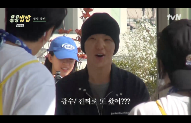 [OSEN=박근희기자]'콩심은데콩나고밥먹으면밥심난다’도경수가시즌2는이광수와단둘이는하지않을것이라고밝혔다.6일전파를탄tvN‘콩심은데콩나고밥먹으면밥심난다’(이하‘콩콩밥밥’)에서는이광수와도경수의구내식당영업마지막이야기가펼쳐졌다.이광수,도경수는이영지와함께구내식당오픈이후처음으로하는야외배식에도전했다.음식을만드느라고군분투하는경수에제작진은“경수콩콩밥밥2는절대안하겠다”라고말하기도.도경수는“이렇게둘이는못할것같아요”라며이광수와단둘이는못할것같다고밝혀웃음을안겼다.이광수는“내가요리를좀배우면되잖아”라고말했고,도경수는“그러면너무좋죠”라며화색을보였다.이어이광수는“아니근데나아니면떡볶이누가저을거야”라고장난스럽게말해웃음을안겼다./[email protected][사진]‘콩심은데콩나고밥먹으면밥심난다'방송화면캡쳐Copyright©OSEN.무단전재및재배포금지.