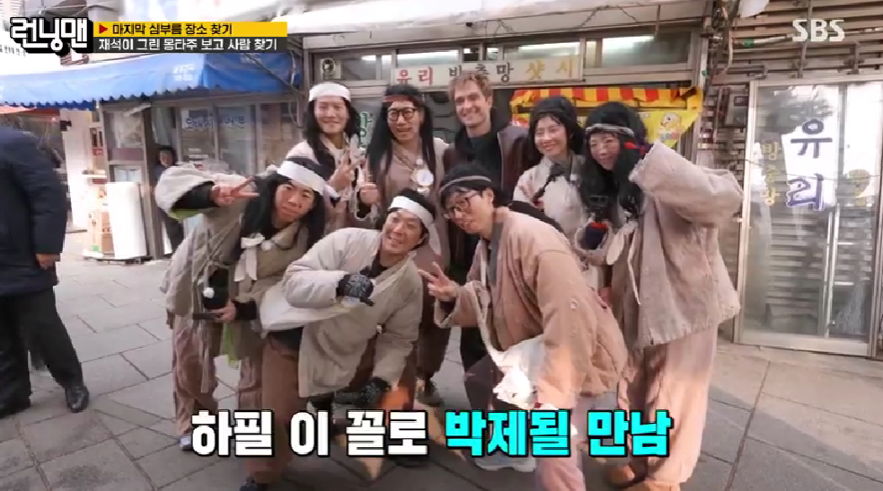[스타뉴스|정은채기자]/사진='런닝맨'방송화면캡쳐'런닝맨'멤버들이로버스패티슨과친구가됐다.9일방송된SBS'런닝맨'에서는노비가된멤버들이대감님이말한심부름을위해서울곧곧의심부름장소에방문하는''혼돈의노비생활'레이스가펼쳐졌다.이날멤버들은제작진의사전지시에따라노비로변신한채오프닝장소에등장했다.그러나노비보다는거지에가까운행색.모든걸내려놓은분장에실성한듯웃는지예은을향해유재석은"오늘너너무예쁘다.아는동생소개해주고싶다"라고짓궂은장난을치기도.노비가된멤버들은대감님이말한심부름장소들을모두방문,심부름을완수해야만무사히퇴근할수있다.고생끝에얻게된마지막심부름장소의힌트는유재석만이확인할수있다.유재석은사진확인후'똥손'으로초상화하나를만들어멤버에게공유했다.멤버들은해당단서로만주인공을찾아야하는난관이주어졌다.일단멤버들은송강호주연의영화'효자동이발소'를떠올리며해당인물이이발사라고추측했다.멤버들은서울곳곳을누비며수소문하던중통인시장에서할리우드배우'로버트패틴슨'과의뜻밖의만남까지성사됐다.봉준호감독의신작'미키17'을홍보차내한중통인시장을지나던멤버들과우연히동선이겹친것.훤칠한기럭지의로버트패틴슨은멤버들을보자살인미소로인사를건넸다.이어그는멤버들과한명한명악수하며인사를나눴다.멤버들은누추한행색에을부끄러워하며통역사에게"평소에는다들이렇지않다.오늘은노비역할을하고있는것"라고잘전달해달라고간곡히부탁해보는이들의웃음을자아냈다.지석진이짧은영어로"우리는한국에서유명하다"라며"(이렇게우리가만난건)데스티니(Destiny)라고하자로버트패틴슨은받아주며"다친구해요"라고화답했다.뿐만아니라헤어지기전마지막으로멤버들에게사진을찍자고먼저제안했다.기념사진을찍은후김종국이"한국에서좋은시간을잘보내고있냐"라고하자"완전잘보내고있다.(한국에)온지24시간정도됐다"라며이틀더머물예정이라고전했다.한편멤버들이찾던인물은이발사가아닌한의사였다.일제강점기였던1914년부터3대째종로에서한의원을운영중인이규옥한의사가그림속주인공이었다.정은채기자[email protected]©스타뉴스&starnewskorea.com,무단전재및재배포금지